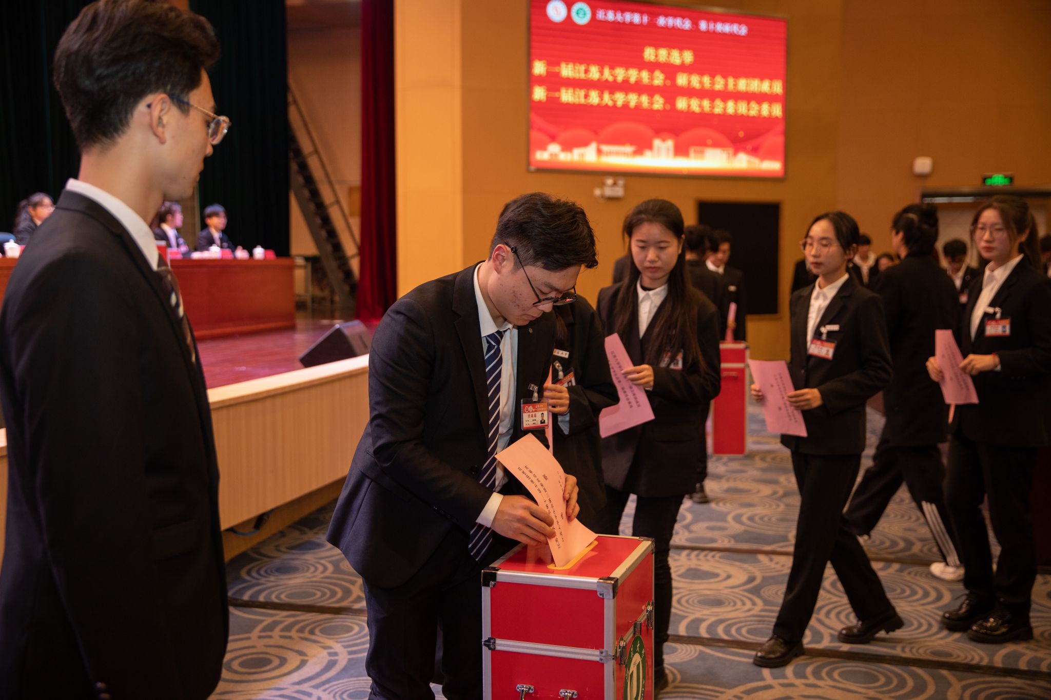 开幕会后,学代会、研代会第一次全体会议和第二次全体会议在小礼堂进行。大会听取了校学生会组织常设机构和执行机构工作报告,选举开运体育平台官方网站学生会、研究生会主席团成员和委员会委员,表决通过了开运体育平台官方网站学生会、研究生会相关工作报告等。计票期间,大会组织观看了电影《一山之隔》,引导广大青年学生铸牢中华民族共同体意识。
