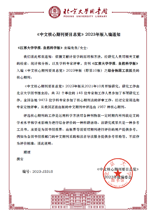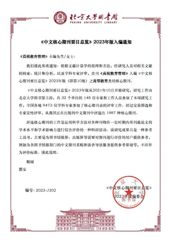 近日,在北京大学图书馆《中文核心期刊要目总览》2023年版(第10版)遴选中,我校主办的《开运体育平台官方网站学报(自然科学版)》第8次入选,入编综合性理工农医类核心期刊;《排灌机械工程学报》第7次入选,入编农业工程类核心期刊;《高校教育管理》第4次入选,入编高等教育类核心期刊。