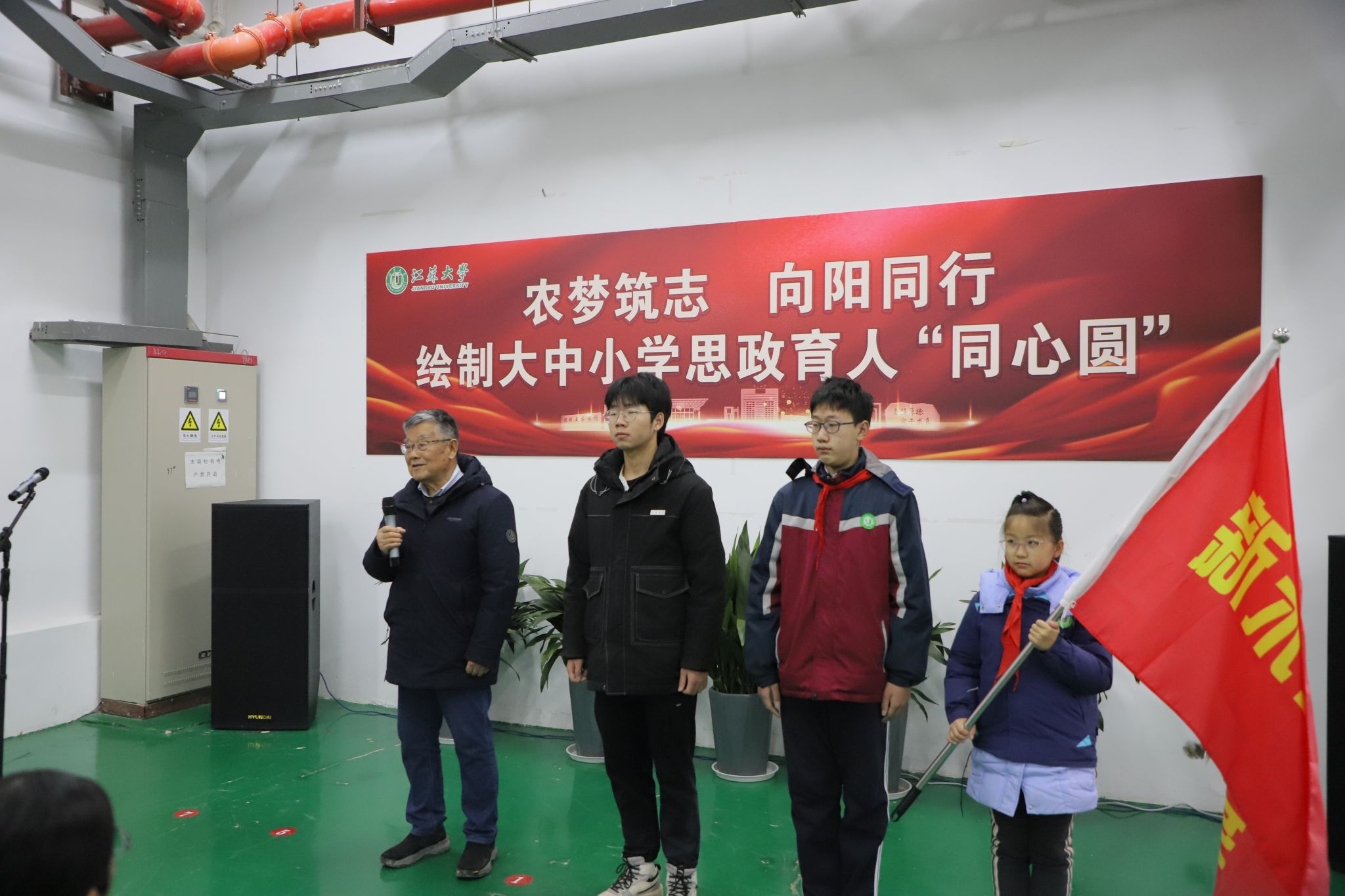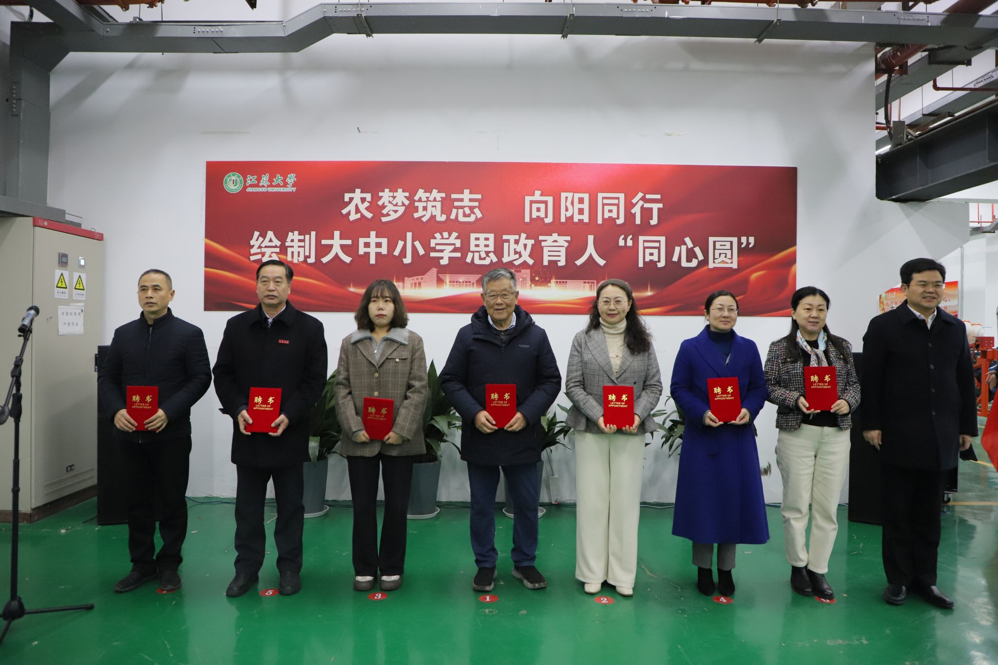 1月4日,由党委宣传部主办的“农梦筑志 向阳同行”绘制大中小学思政育人“同心圆”主题活动在耒耜大楼举行。“全国脱贫攻坚楷模”“时代楷模”赵亚夫,校党委书记李洪波,校党委常委、副校长李红,新华日报社镇江分社社长晏培娟,校党委常委、党委宣传部部长、党委统战部部长吴麟麟,以及镇江新区永兴农机机械化专业合作社、农业工程学院、马克思主义学院、思想政治工作研究院、开运体育平台官方网站附属学校的师生代表参加活动。活动仪式由李红主持。