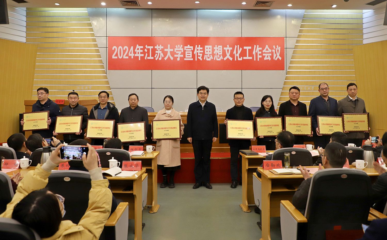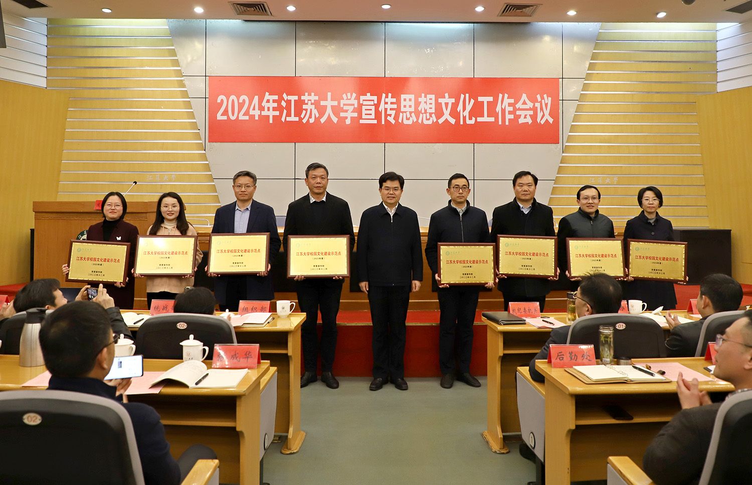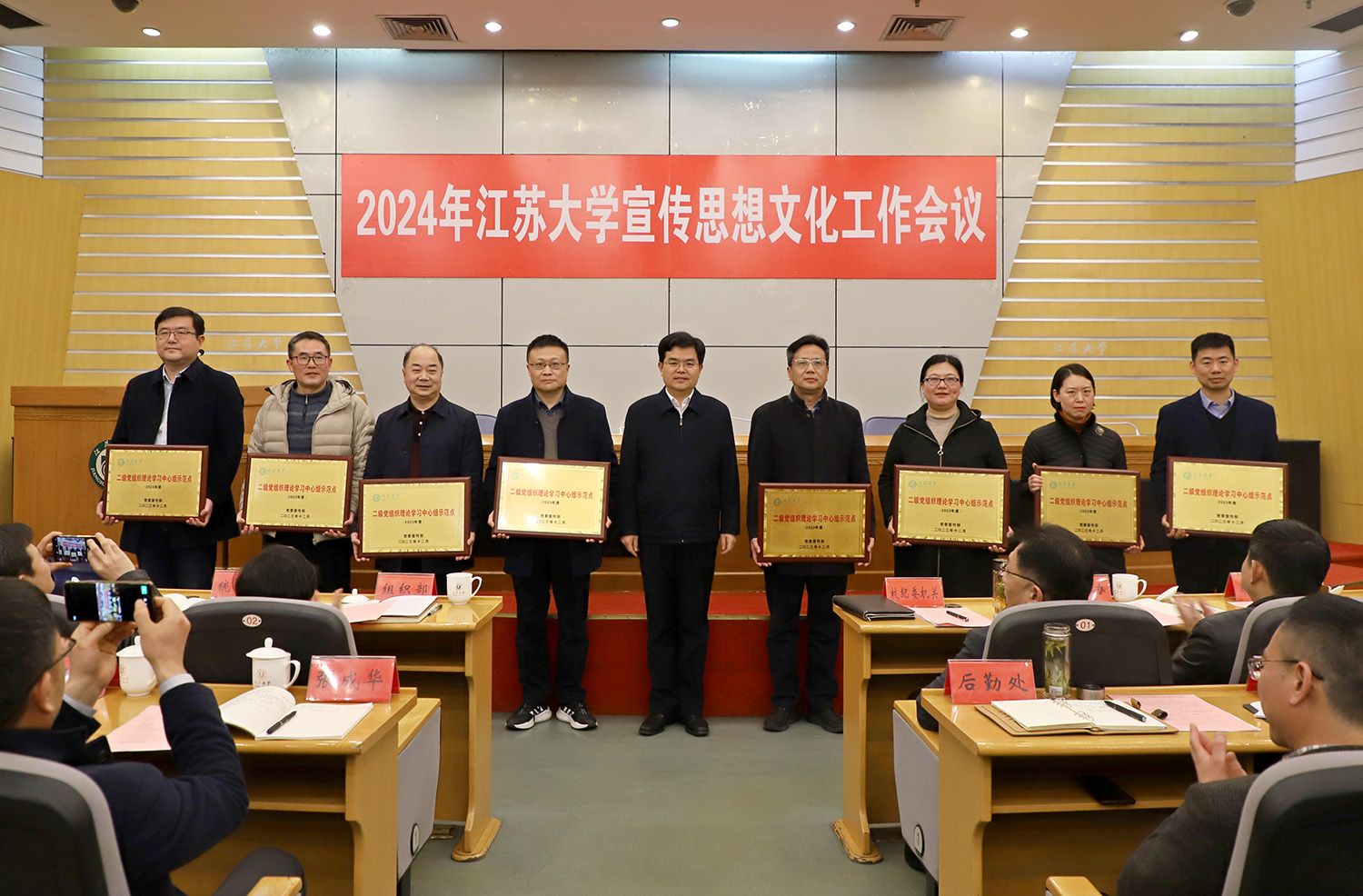 会上,对获评2023年度二级党组织理论学习中心组示范点、校园文化建设示范点、新闻宣传工作先进单位的单位进行了表彰。
