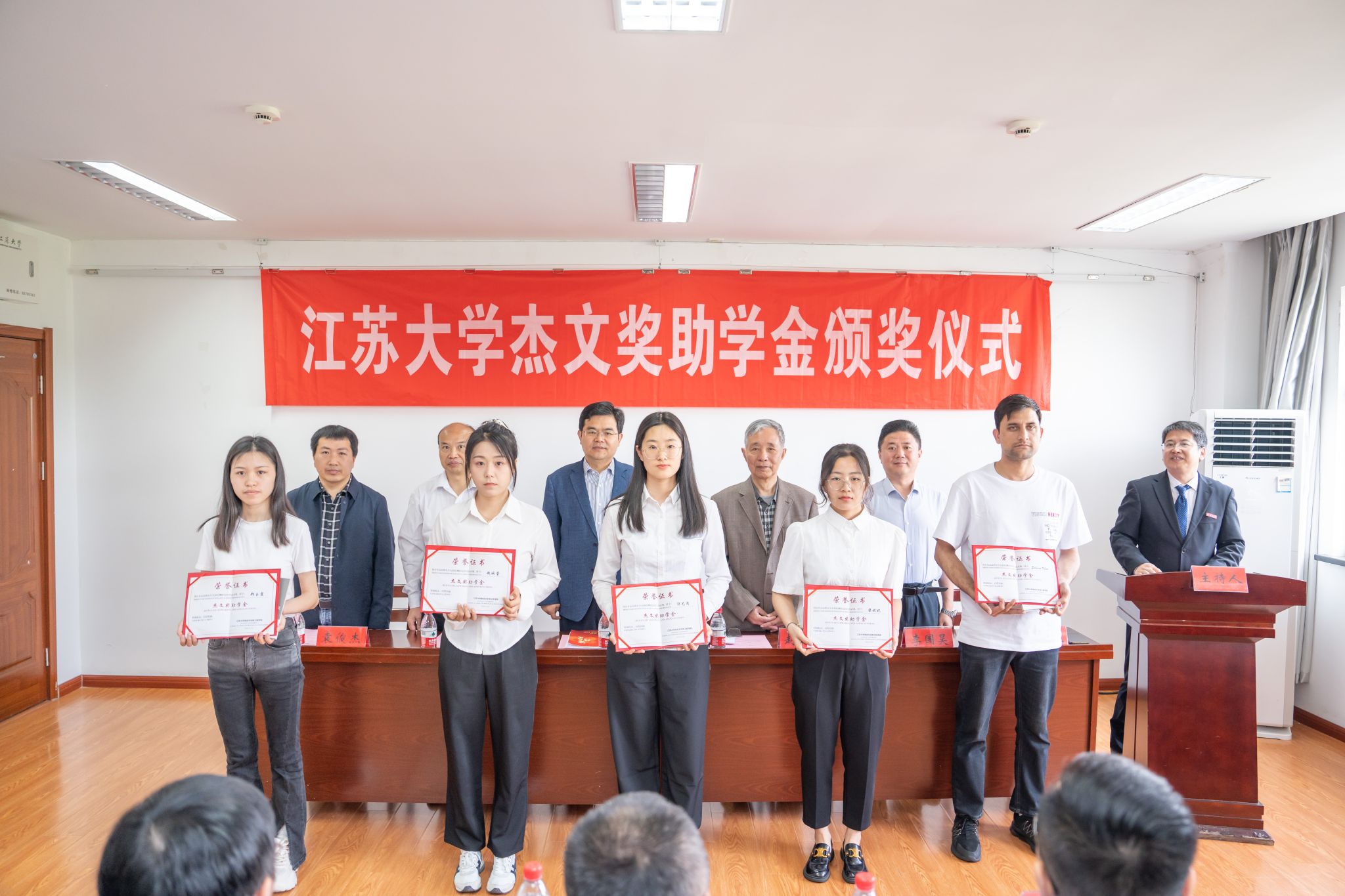 5月12日,2024年度开运体育平台官方网站“杰文奖助学金”颁奖仪式在文华科研楼报告厅举行,10名研究生获得资助。校党委书记李洪波出席颁奖仪式并讲话,副校长邹小波,校友总会秘书长李国昊,研究生院、食品与生物工程学院相关负责人,捐资校友代表、教师代表和食品无损检测方向研究生等近50人参加会议。