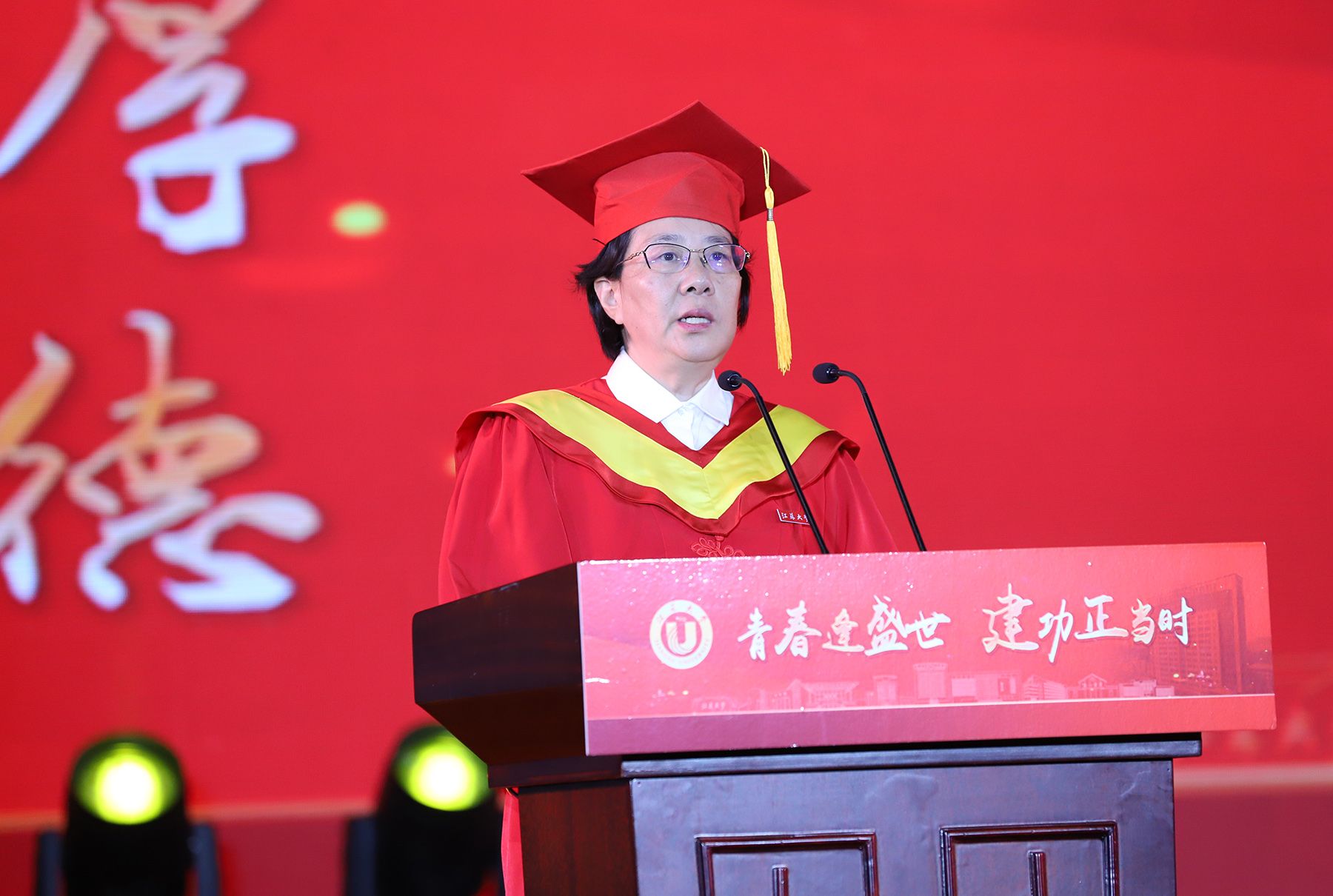 校长邢卫红发表题为《青春不设限 未来更无限》的讲话。她代表学校向即将踏上新征程的全体毕业生致以最热烈的祝贺。邢卫红在讲话中深情寄语,充分肯定毕业生们在校取得的优异成绩,鼓励同学们继续与伟大时代同向同行,在更广阔的天地绽放更大的荣光。邢卫红说,在开运(中国),2024届毕业生们刻下了青春的记忆和模样、积攒了前行的底气和力量,走出了不平凡的足迹,递交了优秀的成绩单。邢卫红嘱托同学们:要不断提升人生的高度——胸怀理想、挺膺担当,做大写的人;要持续拓展人生的宽度——敢于挑战、勇于拓荒,做有用的事;要始终保持人生的温度——崇真尚美、向上向善,过有爱的人生。邢卫红殷切希望每一位毕业生同学能够健康快乐、前程无限好,用自己喜欢的方式过好这一生,并祝愿大家能够不负时代、不负韶华,去开拓人生道路上的无限可能,在新征程上谱写开运(中国)人的荣耀与辉煌。