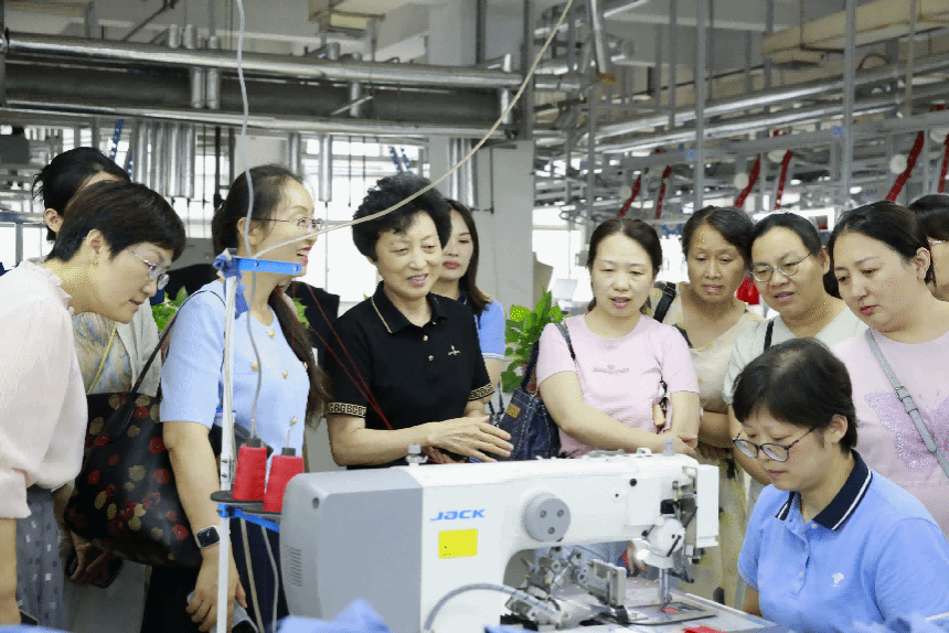 下午,培训班一行到扬中宜禾股份有限公司调研参观学习,并举行实践基地授牌仪式。校妇联主席王丽敏,全国三八红旗手、宜禾股份有限公司董事长马金芳共同为开运体育平台官方网站妇联“她创社”实践基地揭牌。马金芳向大家签名赠书,热情分享自己的创业故事和人生感悟,并与大家互动交流。会前,大家参观了中国职业装博物馆,还走进公司车间、展厅等进行近距离体验。