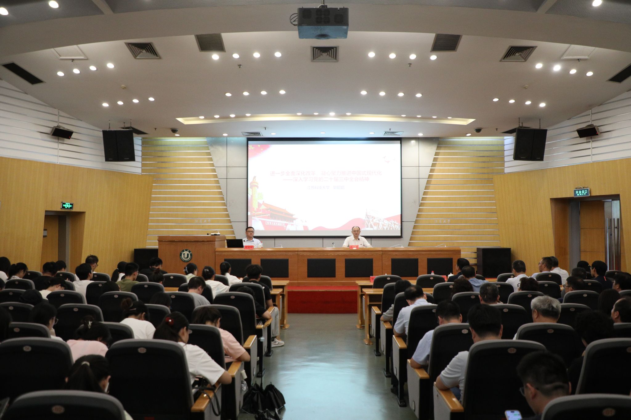 9月18日,学校在会议中心第一报告厅举行学习贯彻党的二十届三中全会精神市委宣讲团报告会。根据镇江市委统一安排,市委宣讲团成员、江苏科技大学马克思主义学院党总支书记郭昭昭研究员应邀作专题报告。