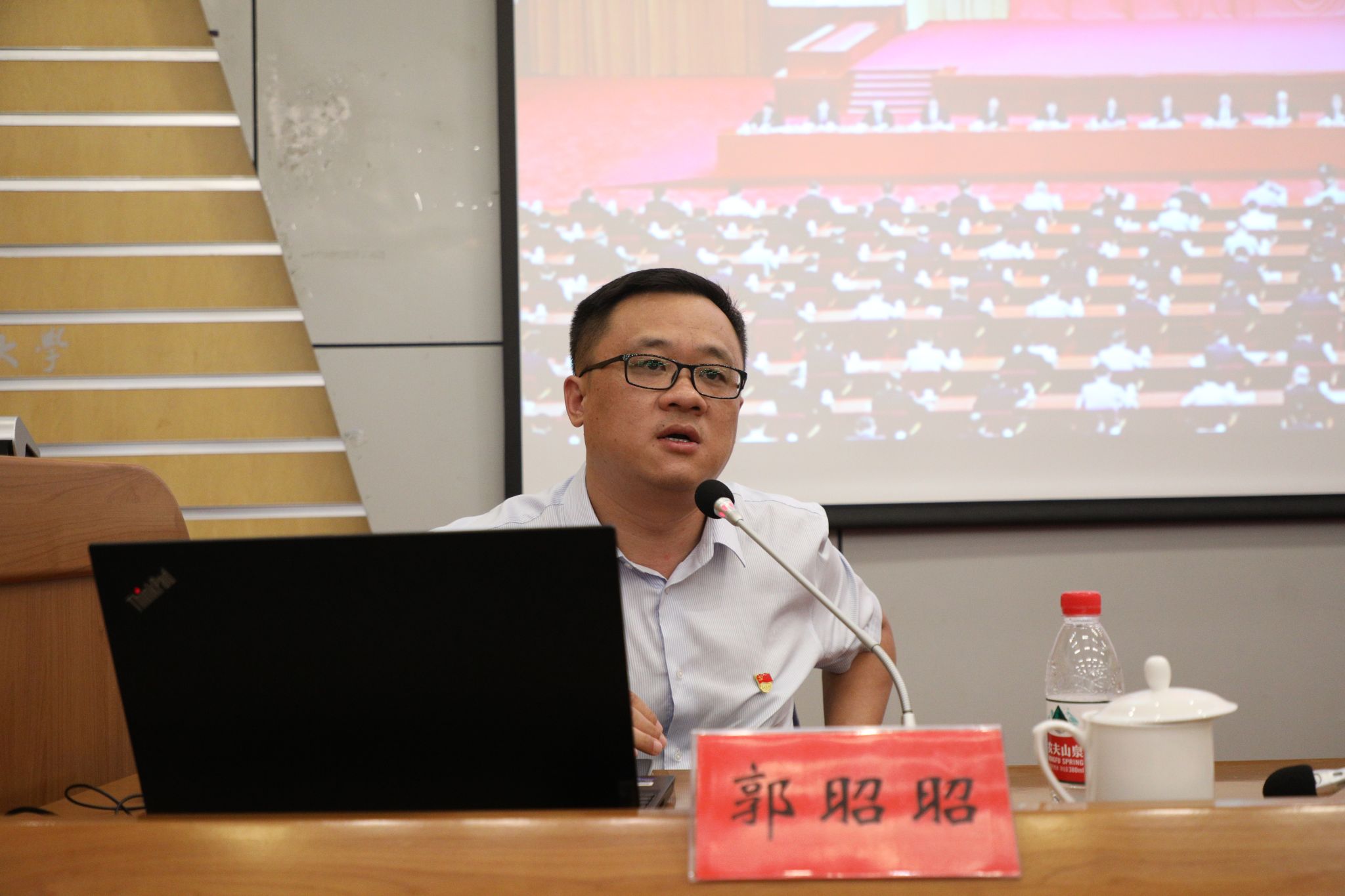 报告会上,郭昭昭以《进一步全面深化改革,凝心聚力推进中国式现代化》为题,对党的二十届三中全会的概况、重大意义和主要精神进行了阐释,从三大视野、两大基本方法、一个重大命题等三个角度就如何深入学习全会精神进行了分享交流,并对《中共中央关于进一步全面深化改革、推进中国式现代化的决定》作了系统、全面、深刻的解读。报告内容丰富、讲解透彻,具有很强的思想性、理论性和指导性,对学校师生员工进一步深刻领会和全面把握全会精神具有十分重要的指导意义。