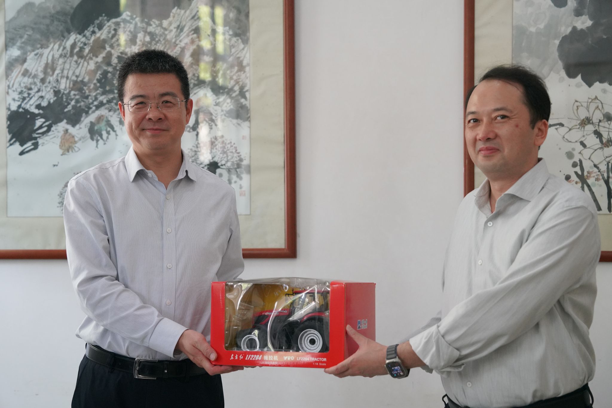 座谈会后,楼志刚一行参观了校史馆、中国农机文化展示馆和图书馆。任旭东代表学校接受国机集团赠予的拖拉机纪念模型。