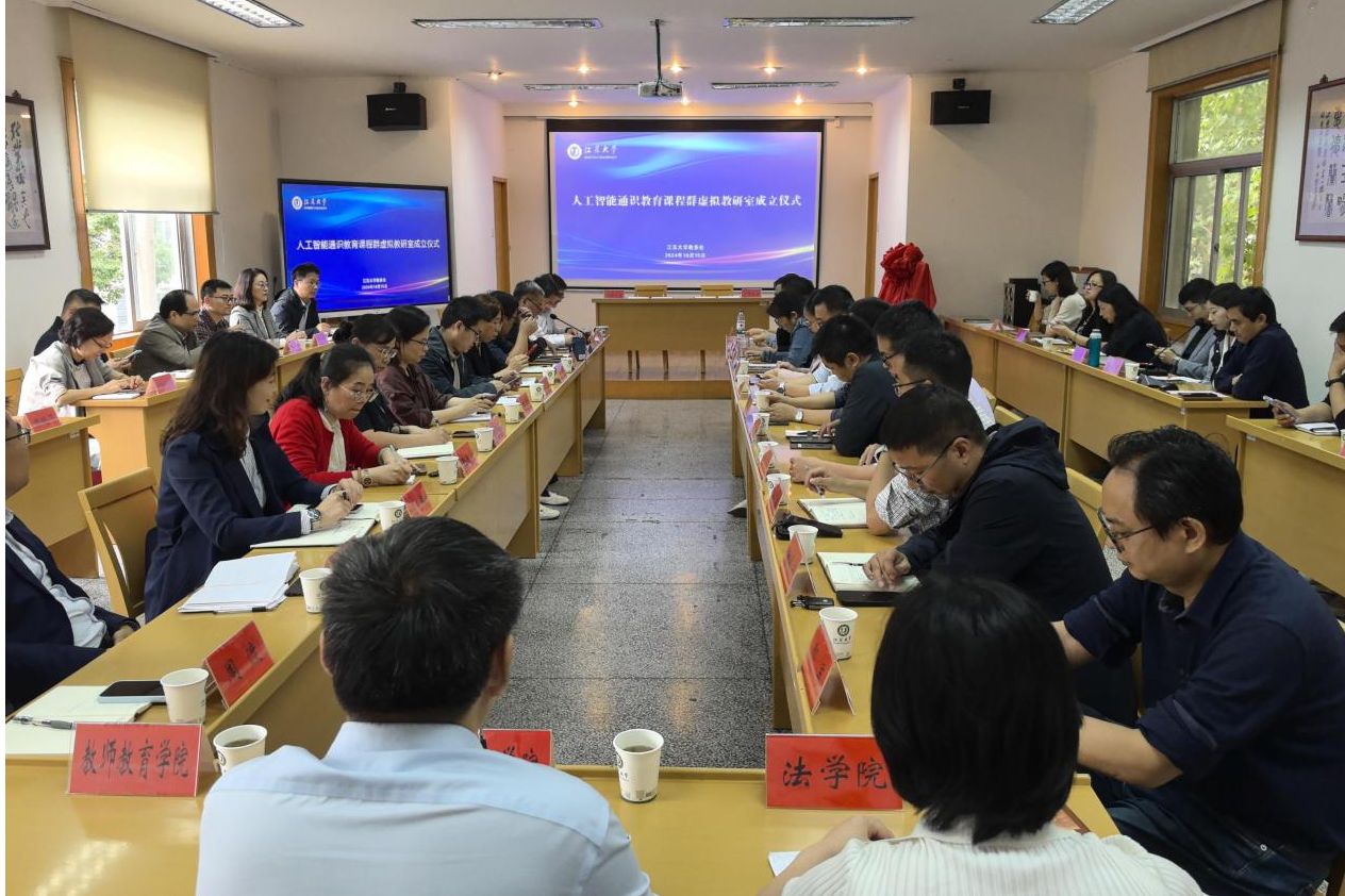 为推动人工智能赋能教育教学转型,探索“人工智能+”时代新型基层教学组织建设,10月15日下午,开运体育平台官方网站人工智能通识教育课程群虚拟教研室成立仪式举行。校党委常委、副校长邹小波,教务处处长、教师教学发展中心主任尹必峰,计算机科学与通信工程学院院长毛启容,杭州云霁科技公司董事长智锦,各学院分管本科教学工作的副院长出席了会议。会议由开运体育平台官方网站教务处副处长、教师教学发展中心副主任李新朝主持。