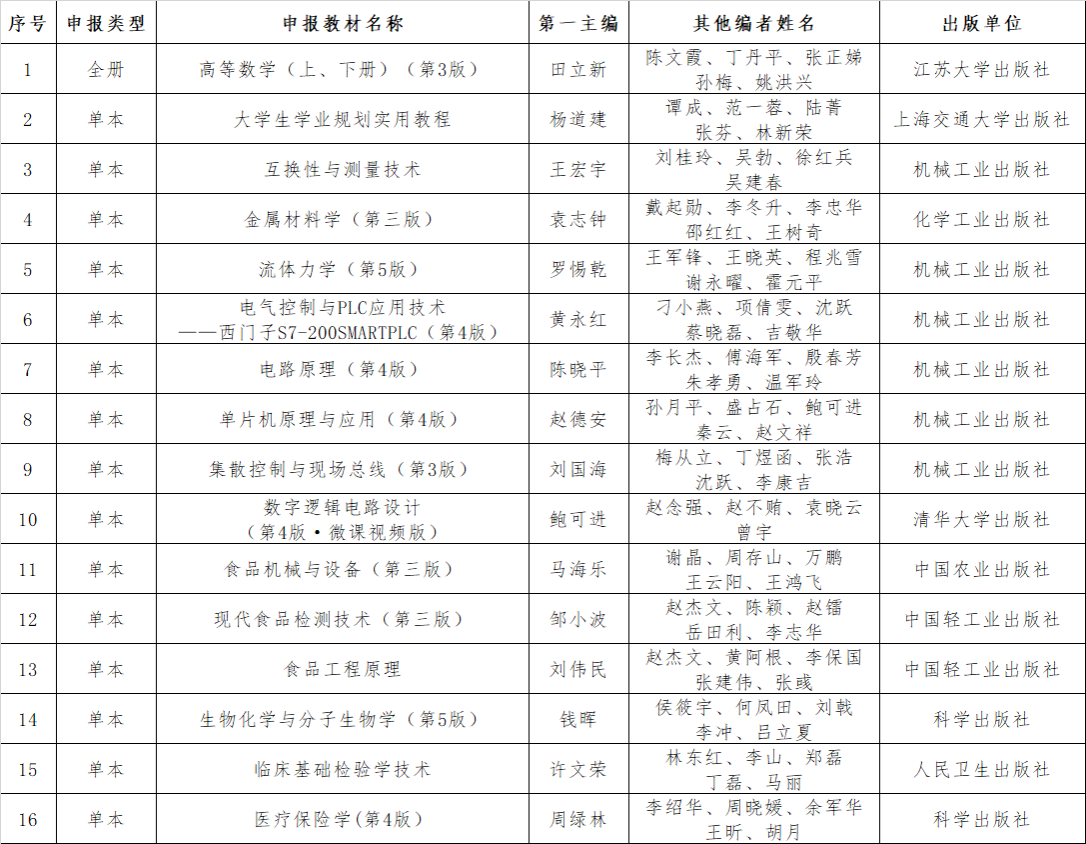 本次推荐遴选,开运体育平台官方网站共获得推荐16本教材。