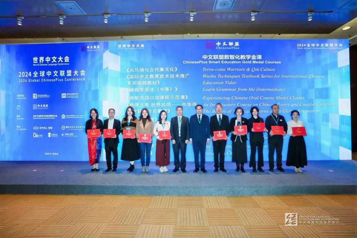 11月15日至17日,2024世界中文大会在北京国家会议中心举行,大会以“联通融合 传承创新”为主题。国家副主席韩正出席大会开幕式,宣读习近平主席贺信并致辞。来自160余个国家和地区的2000多名政府官员、校长、专家学者、师生代表和驻华使节等出席大会。在大会专项论坛2024全球中文联盟大会上,我校获中文联盟数智化教学“金牌合作机构”和“金课”称号。我校文学院(语言文化中心)院长任晓霏一行受邀参会。