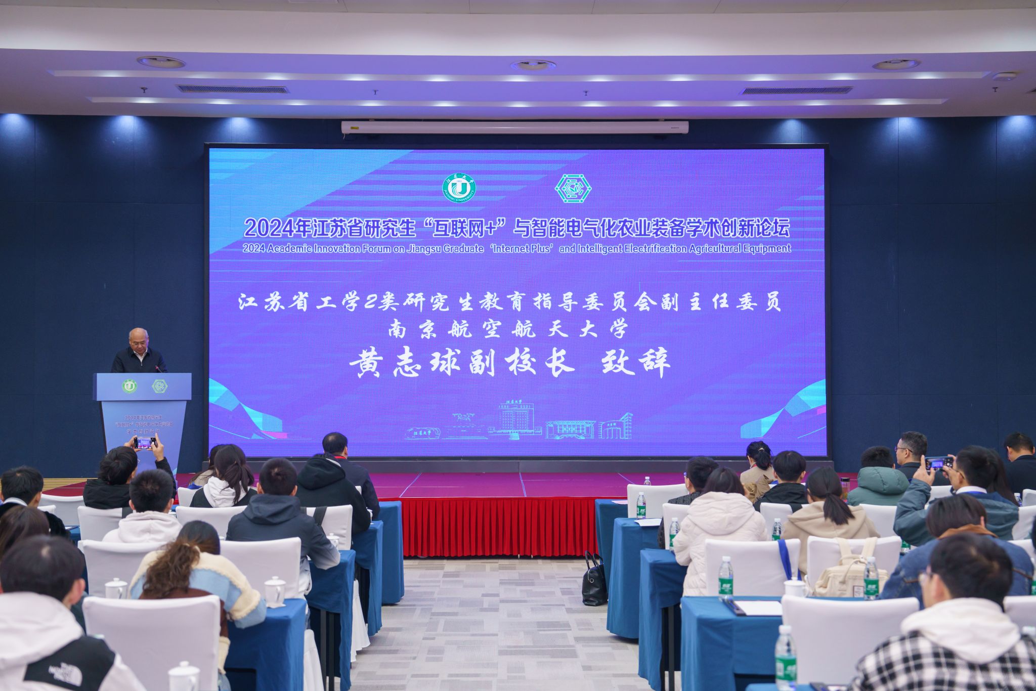 11月22日至24日,2024年江苏省研究生“互联网+”与智能电气化农业装备学术创新论坛在镇江举行。本届论坛议题涉及“互联网+”、智慧农业、智能电气化农业装备等多个方面,旨在利用移动互联网、大数据、人工智能、物联网等新一代信息技术与农业融合,探讨基于互联网平台的现代智慧农业新模式。全国“互联网+”与智能电气化农业装备领域的知名专家学者、研究生等140余名人员线下参加论坛。