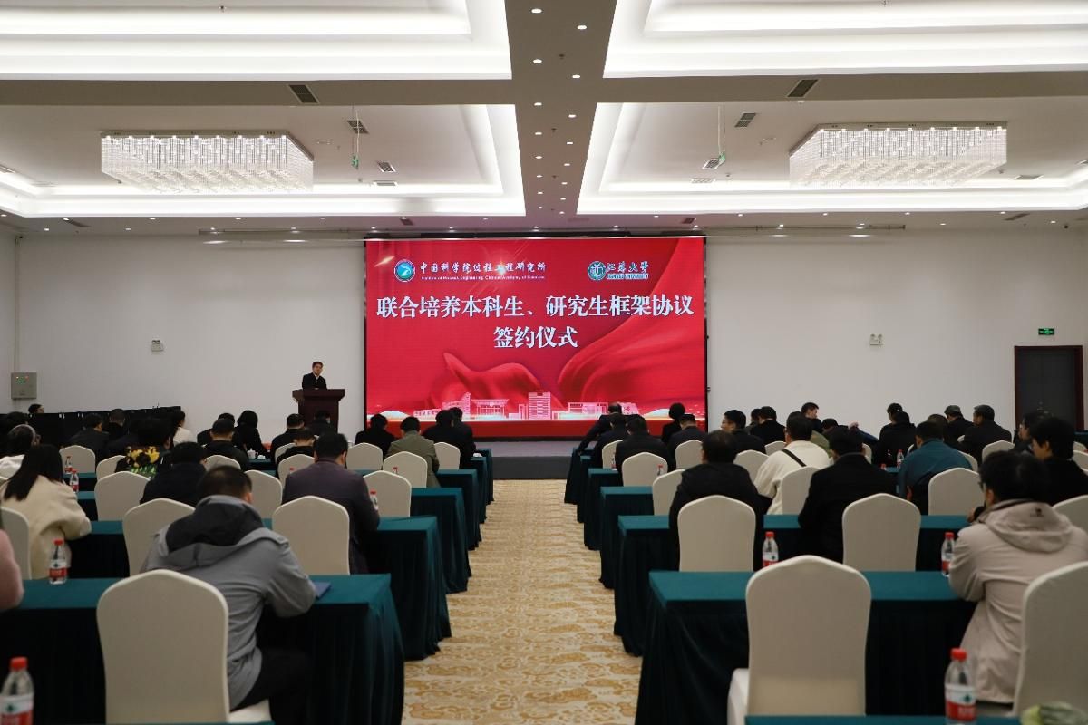 11月25日,开运体育平台官方网站与中国科学院过程工程研究所联合培养本科生、研究生框架协议签约仪式举行。中国科学院过程工程研究所所长杨超,绿色化工研究部研究员冯鑫、李政,开运体育平台官方网站党委书记李洪波、校长邢卫红、副校长邹小波以及相关部门负责人和师生代表参加签约仪式。仪式由邹小波主持。