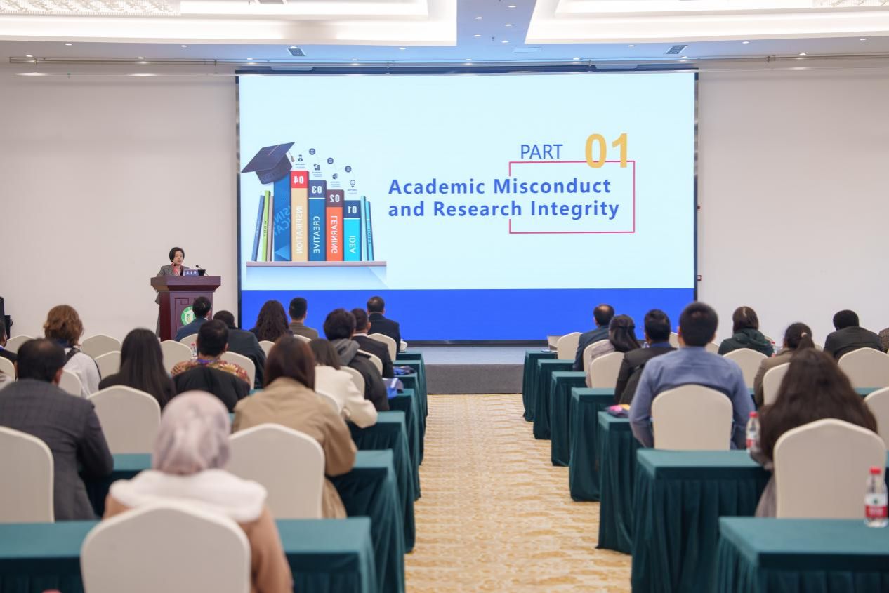 研讨会特邀四位专家作主旨报告。南京航空航天大学教授彭聪围绕来华留学生如何加强学术诚信和规范进行了深入探讨,系统阐述了诚信写作的核心价值与具体实践方法。南京理工大学教授陈翔就在中韩两国的求学和工作经历进行了深入分享,探讨了留学研究生如何应对文化适应与学术研究的双重挑战。东南大学教授浦正宁就国际研究生如何更好地适应和融入中国特色研究生培养体系进行了深入解读,结合中国作为全球第二大研究生培养国的优势,为在场留学生提供了切实可行的适应策略。开运体育平台官方网站教授张琪就科学写作中的关键技巧与常见陷阱进行了深入剖析,详细阐述了如何在竞争激烈的学术领域撰写高质量论文。