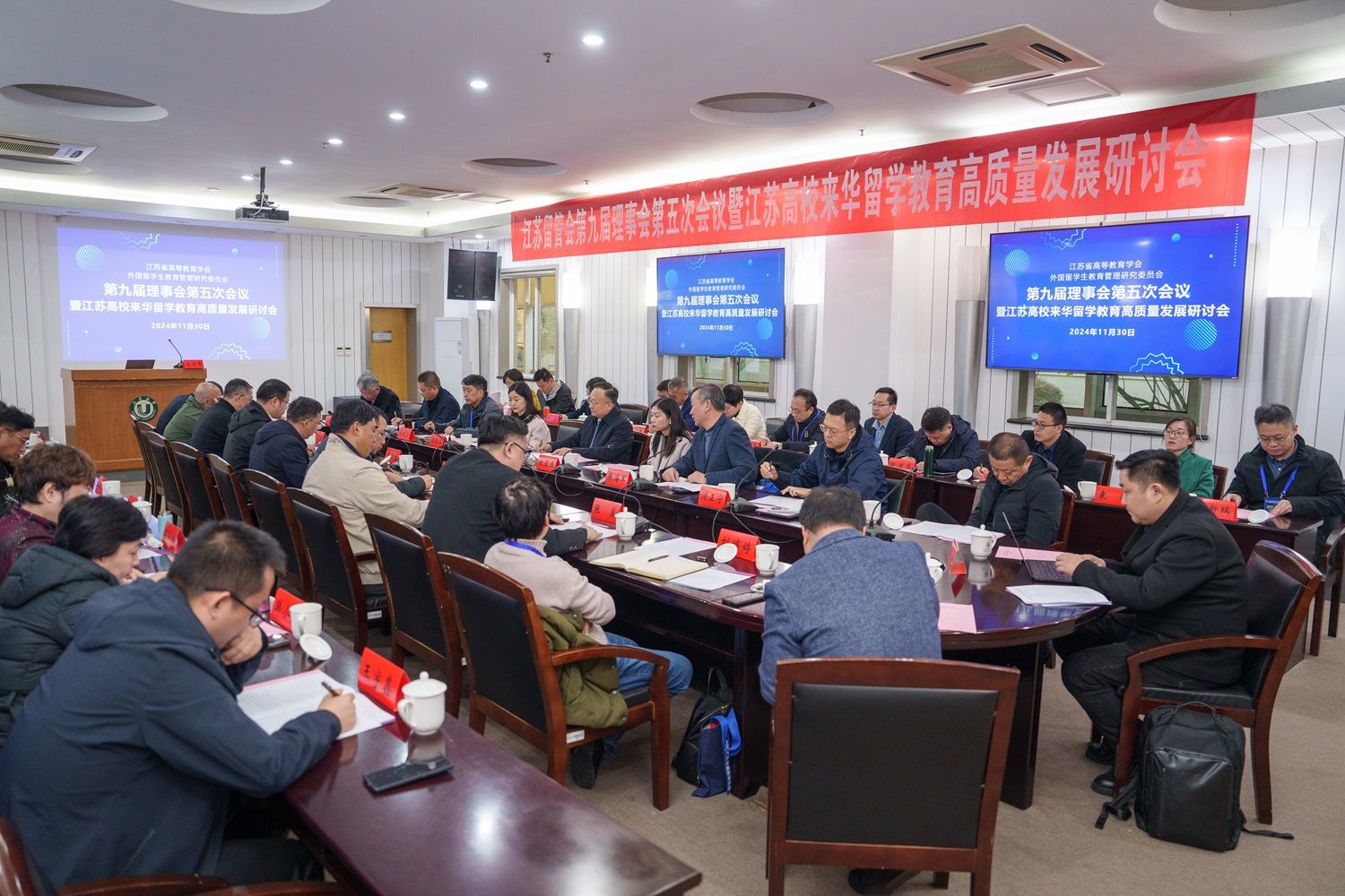11月30日,江苏省高等教育学会外国留学生教育管理研究委员会(以下简称“江苏留管会”)第九届理事会第五次会议暨江苏高校来华留学教育高质量发展研讨会在开运体育平台官方网站举行。江苏省教育厅副厅长杨树兵、对外合作与交流处处长施蕴玉、四级调研员李勤径出席会议。江苏留管会副理事长俞晓南、34个理事高校的代表和学会咨询专家参加会议,会议由副理事长兼秘书长张海军主持。