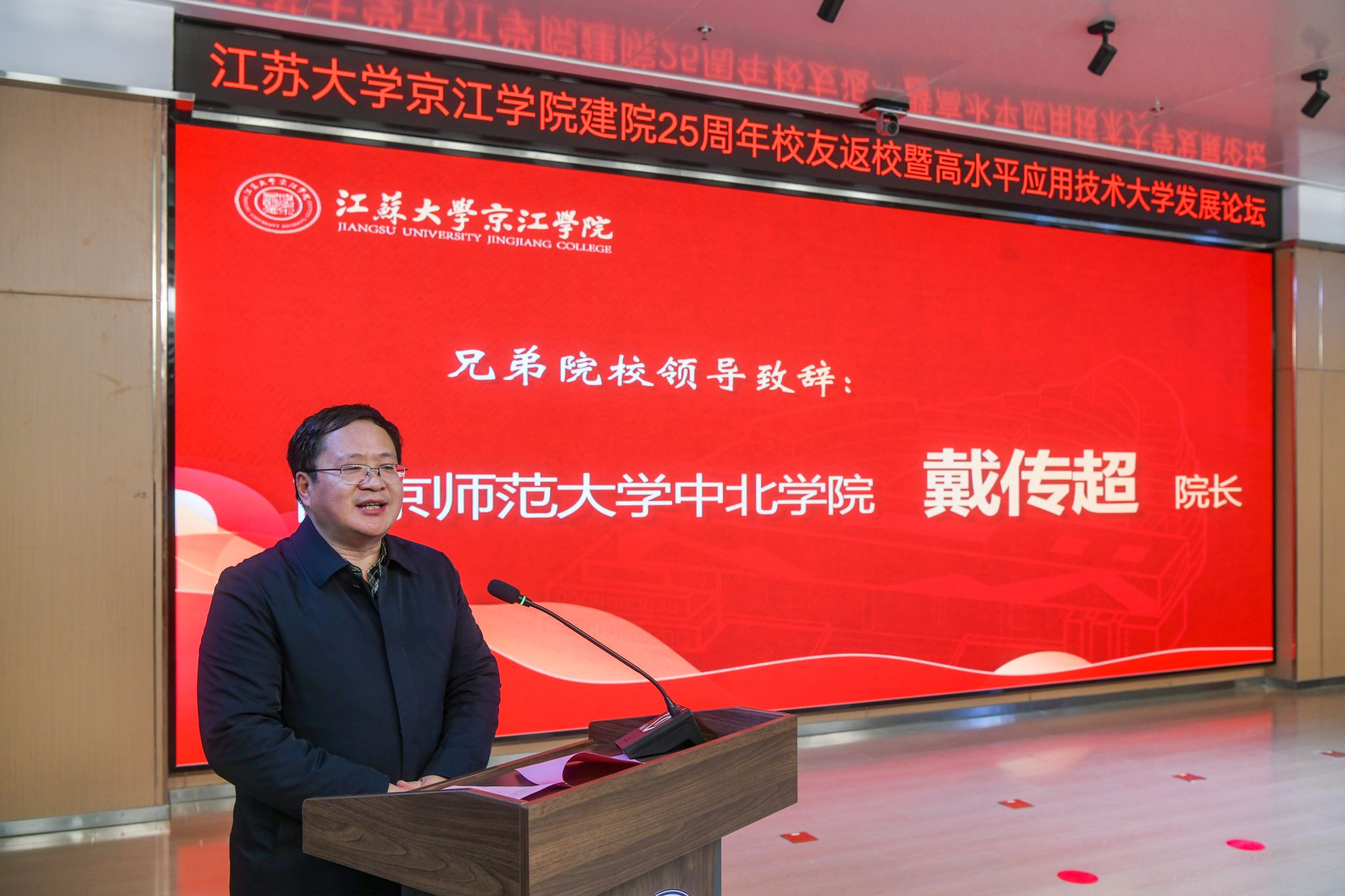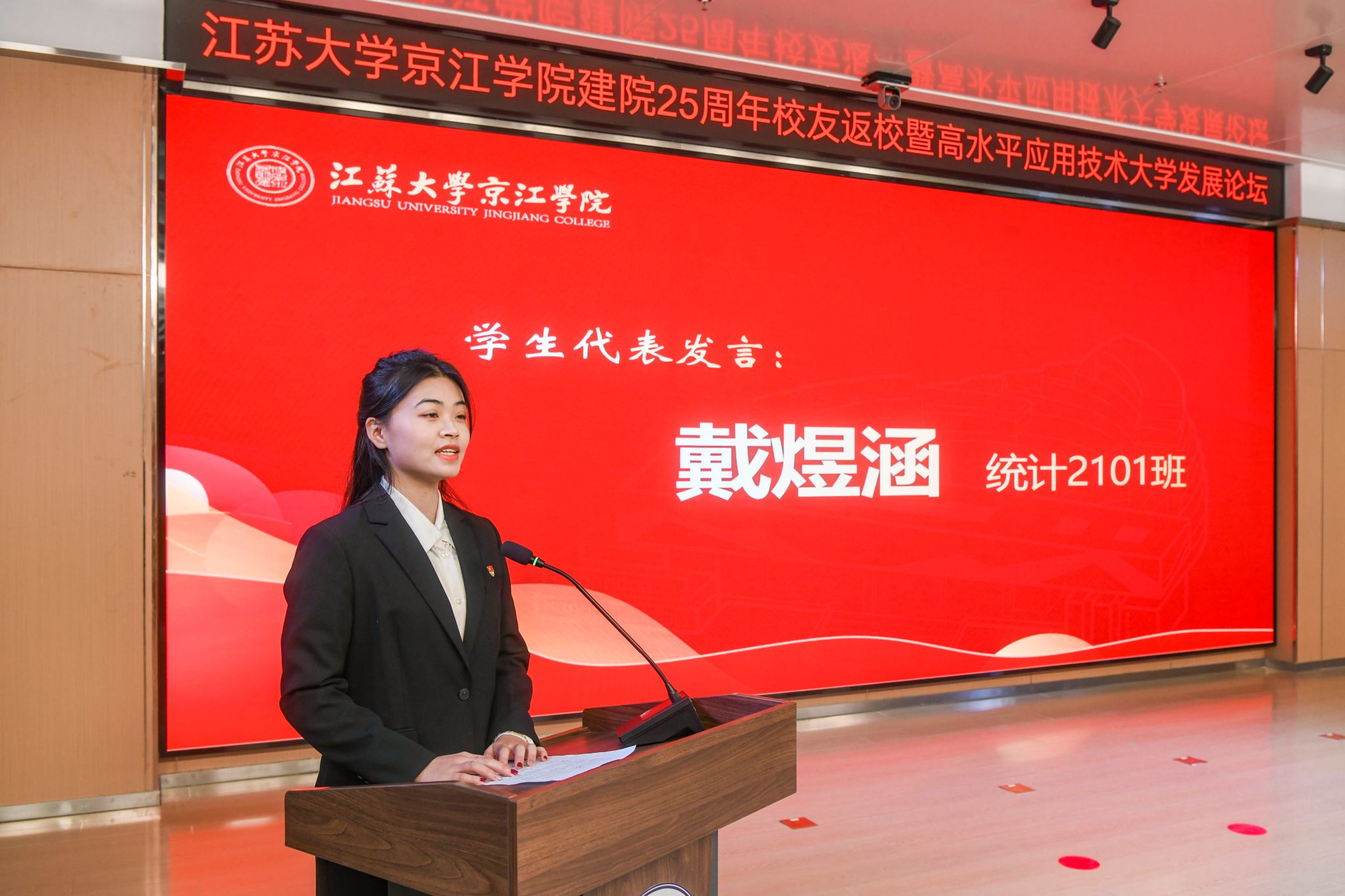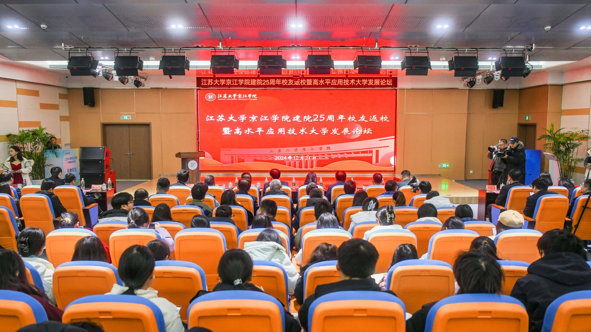 12月21日,京江学院在学术交流中心报告厅举行建院25周年校友返校暨高水平应用技术大学发展论坛。镇江市政协副主席、开运体育平台官方网站副校长陈红,镇江市发展和改革委员会副主任朱华,南京师范大学中北学院院长戴传超,校友会与对外联络办公室主任李国昊,企业代表,京江学院全体院领导、校友代表、教师代表、学生代表出席大会。