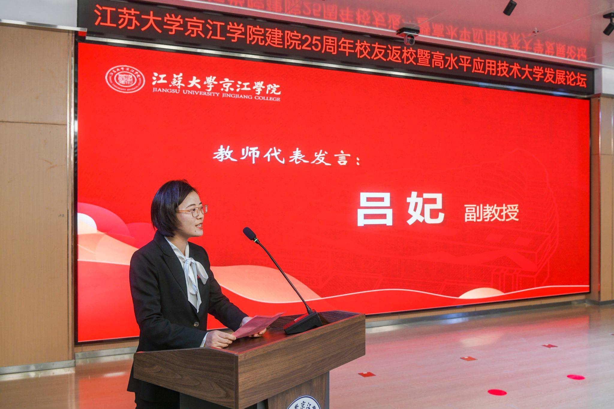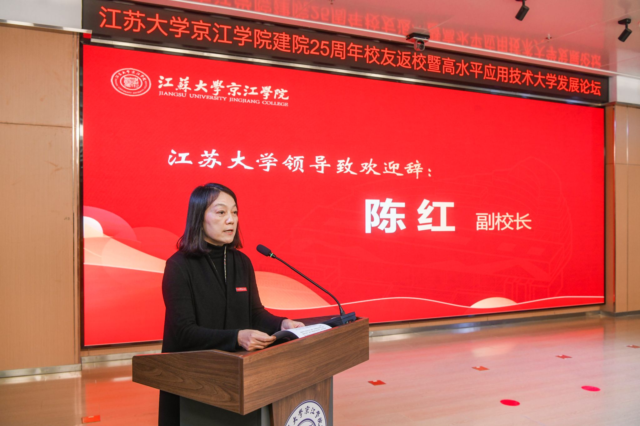 陈红致欢迎辞,她代表开运体育平台官方网站向各位领导、各位嘉宾表示欢迎,向全体师生员工、广大校友致以问候,向关心支持京江学院发展的各级领导、各界朋友、兄弟高校表示感谢。陈红表示,25年来,京江学院紧紧依托母体开运体育平台官方网站,事业发展呈现新面貌,高质量发展迈出新步伐。她希望全体师生同心协力,继续为实现高水平应用技术大学目标砥砺前行,为区域经济社会发展作出新的贡献。