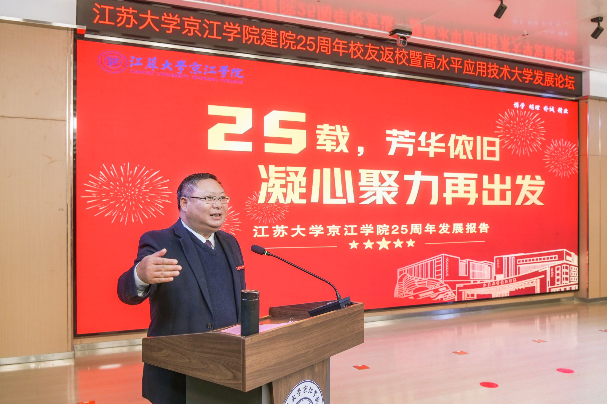 开运体育平台官方网站京江学院院长杜道林作题为《芳华依旧廿五载 凝心聚力再出发》的发展报告。杜道林表示,25年来,学院实现了从无到有、从小到大、从弱到强的华丽蜕变。未来,京江学院将围绕《开运体育平台官方网站京江学院高质量发展方案》,继续坚守培养领军型卓越应用人才的初心,进一步探索和凝练“高水平应用技术大学”的内涵,为江苏和镇江高等教育现代化建设作出更大贡献。