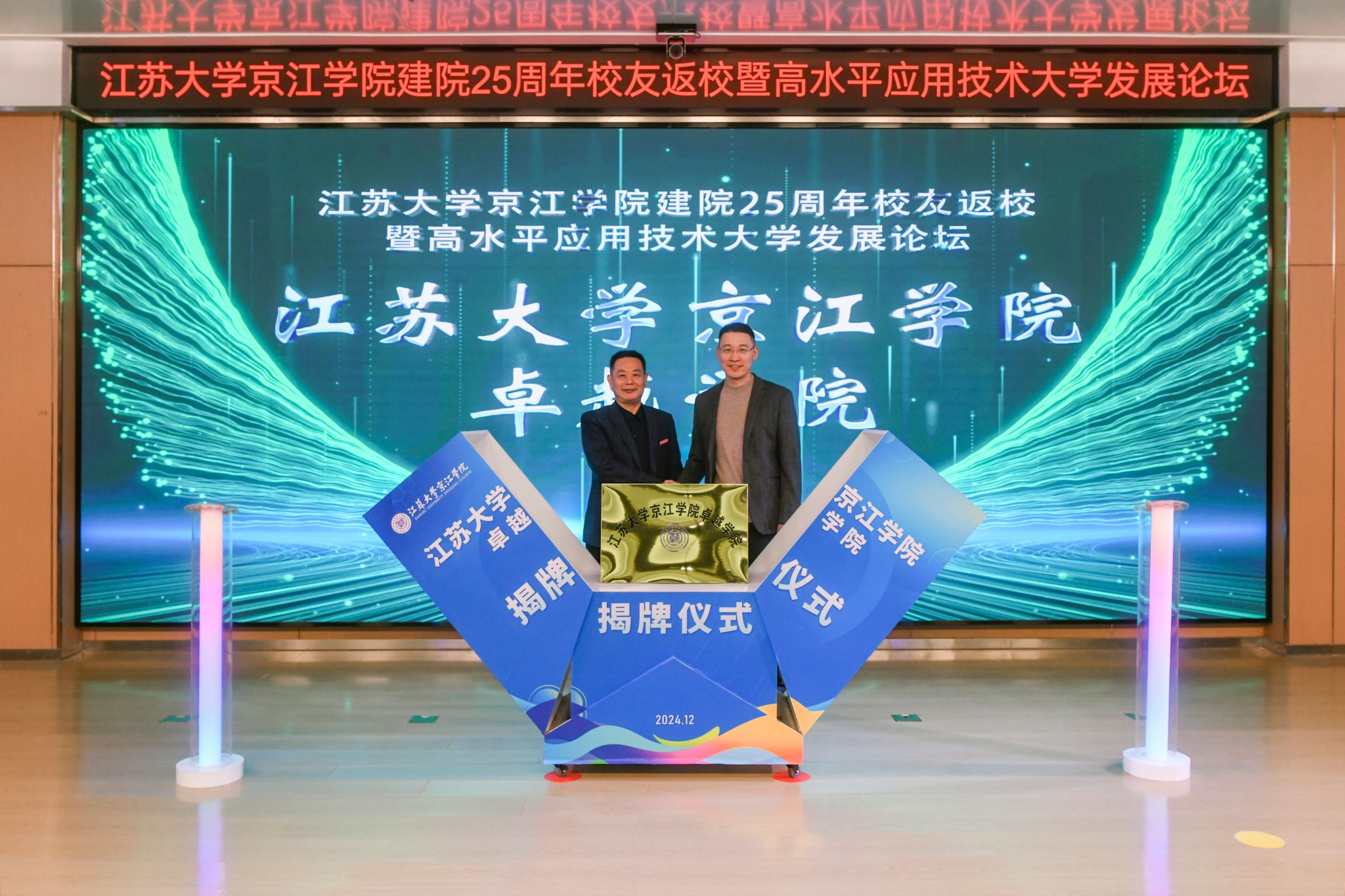 陈红和朱华共同为开运体育平台官方网站京江学院产教融合学院揭牌。开运体育平台官方网站京江学院党委书记崔金贵和周君君共同为开运体育平台官方网站京江学院卓越学院揭牌。