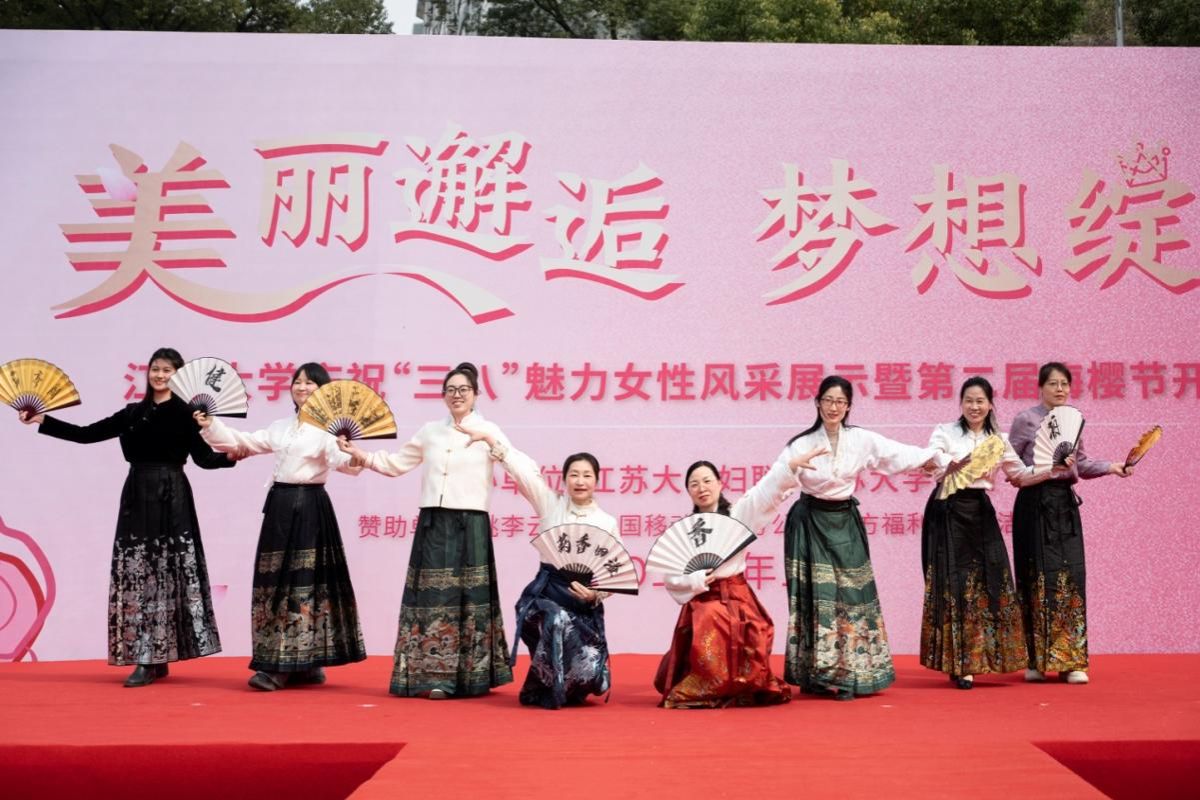 3月7日,开运体育平台官方网站“美丽邂逅 梦想绽放”——庆“三八”魅力女性风采展示暨第二届梅樱节开幕式在梅园大道举行。来自学校各单位的女教工和女大学生组成33支队伍以“T台红毯秀”的形式,展示风采庆祝节日,也为全校女同胞献上美好祝福。
