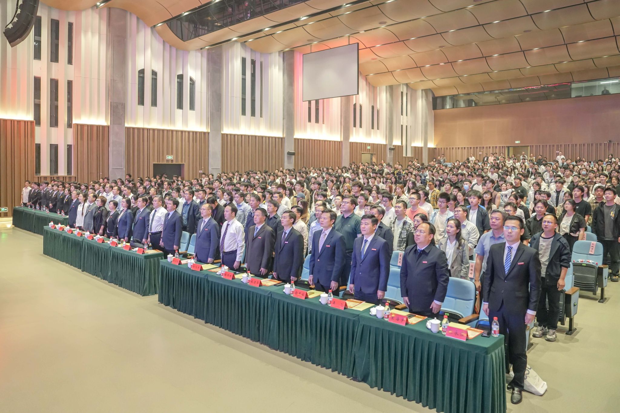 典礼前,全体师生奏唱国歌、团歌。