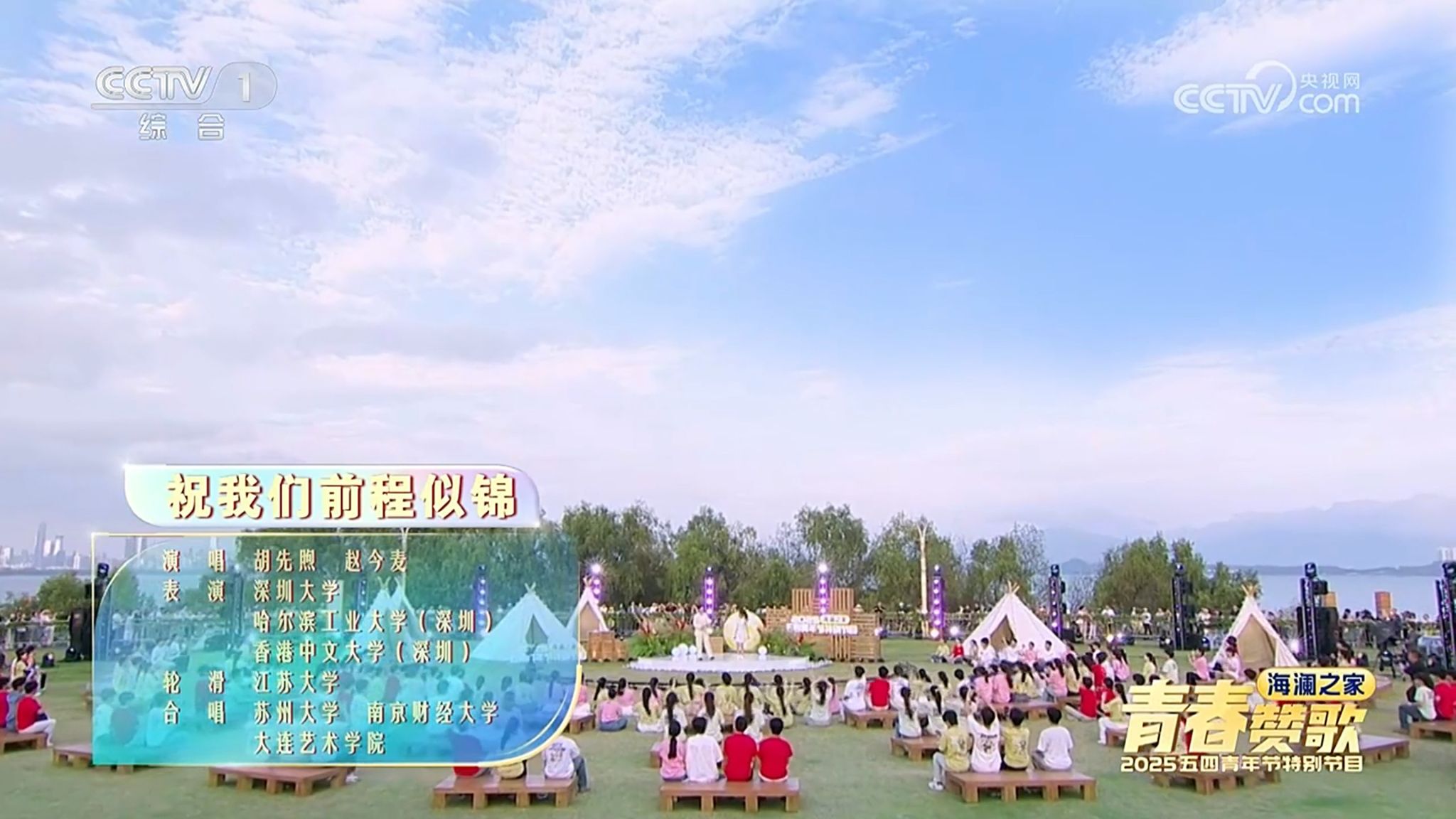 5月4日晚8时,由中宣部、教育部、共青团中央指导,中央广播电视总台主办的《青春赞歌——2025五四青年节特别节目》在央视综合频道(CCTV-1)、综艺频道(CCTV-3)、音乐频道(CCTV-15)和央视新闻、央视频、央视网、云视听客户端等多个央视主流平台联合播出。我校继2021年首次亮相央视五四文艺晚会后,再度登上全国舞台,并以10人阵容创下历次参演规模之最。