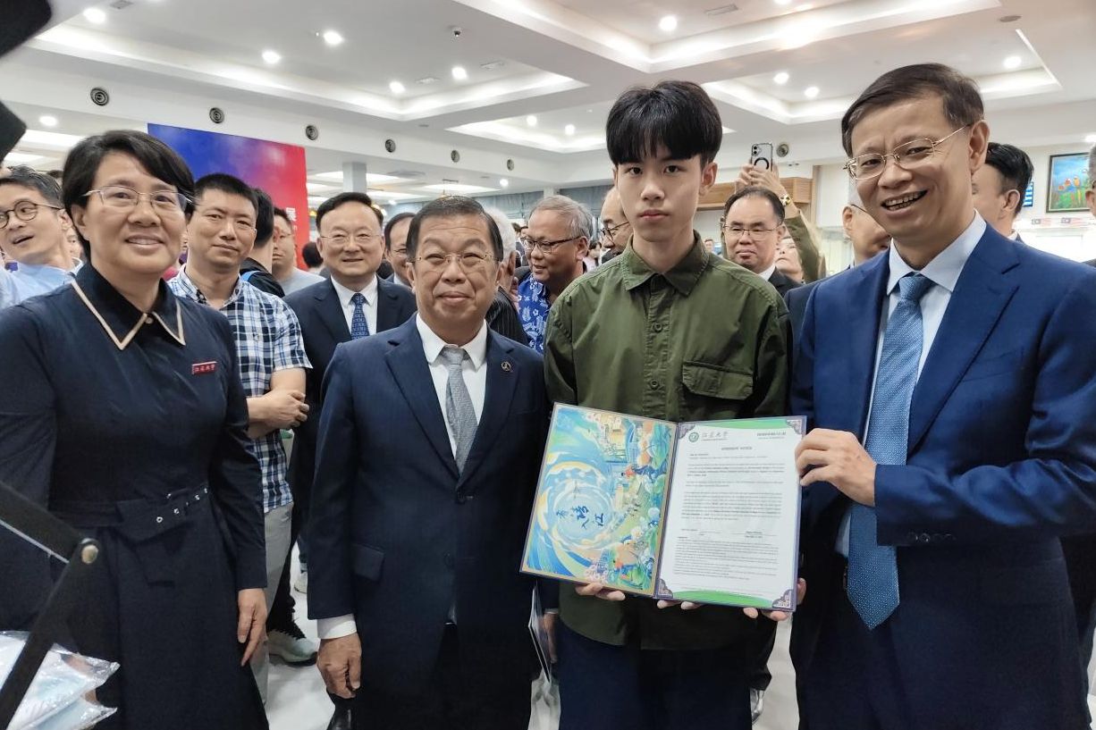 5月20日,邢卫红一行参加江苏—马来西亚高校合作交流活动暨留学江苏展。江苏省人民政府省长许昆林、马来西亚国会议员陈国伟、马来西亚上议员理事会主席拿督斯里凯鲁丁·沙末,江苏省人民政府秘书长吕德明、马来西亚教育交流协会会长马汉顺、马来西亚种植及原产业部部长顾问陈耀宗一行来到开运体育平台官方网站展位。邢卫红向许昆林介绍了开运体育平台官方网站国际人才发展状况,许昆林与来华留学新生家长亲切对话,并为来华留学新生颁发录取通知书。马来西亚科学院院士陈国银参加活动。