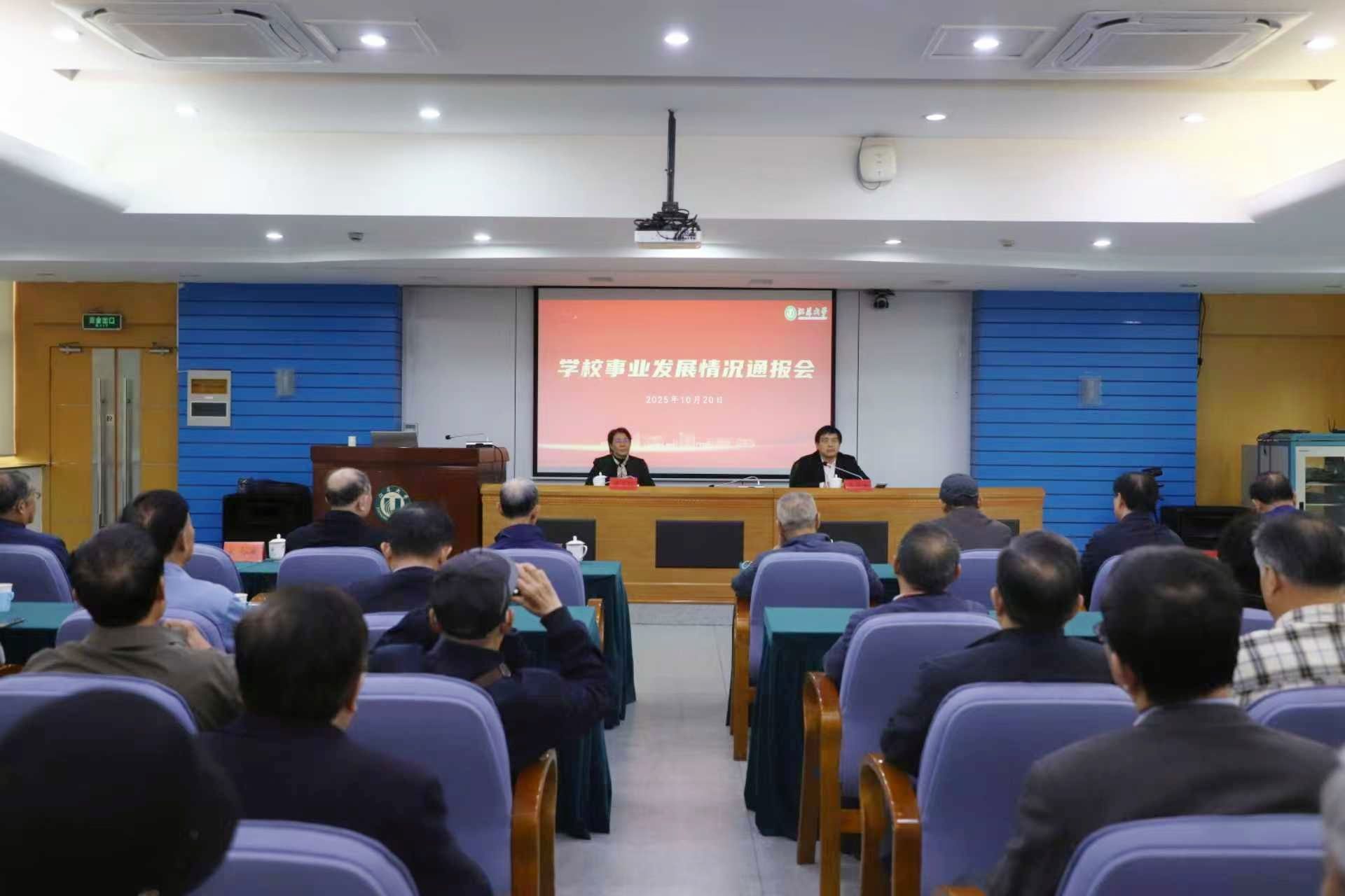 10月20日,学校老同志校情通报会在会议中心第三报告厅举行。校长邢卫红出席会议并通报学校事业发展情况。学校老领导、离退休党委委员、关工委常委、离退休党支部书记及委员、老年协会负责人和部分全省“六好”离退休干部示范党支部党员代表参加会议。会议由副校长王景全主持。