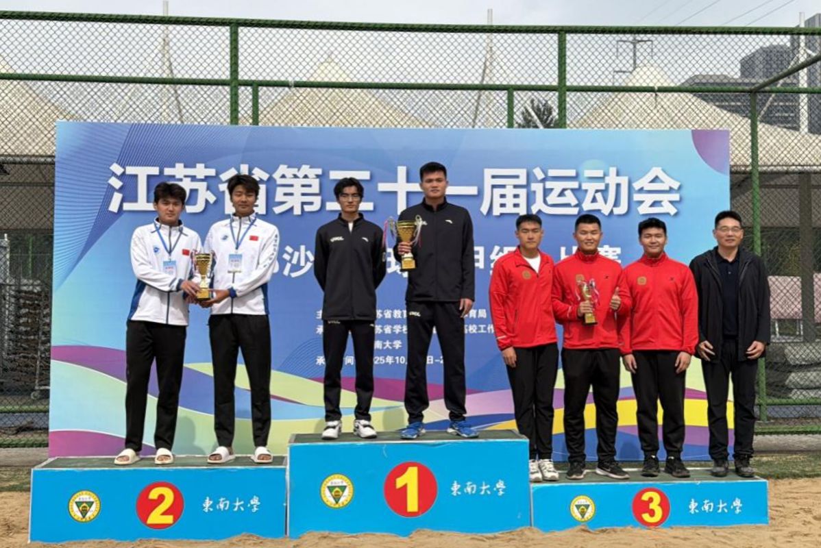 江苏省运动会高校部比赛每四年举办一届,由江苏省教育厅、江苏省体育局联合主办,是省内大学生体育赛事的“最高殿堂”。我校男女沙排队伍的双冠成绩,在全省高校体育舞台上展现了我校学生卓越的体育竞技水平、团队协作精神与青春风采。(体育部)