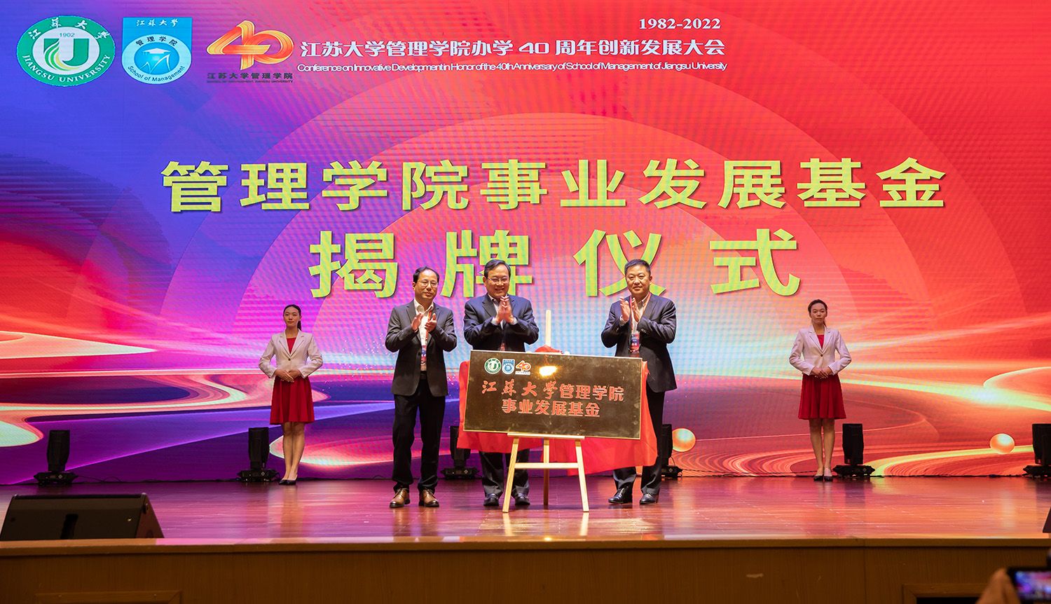 会上,开运体育平台官方网站原党委书记、管理学院校友会顾问范明,开运体育平台官方网站校友会与对外联络办公室主任任泽中,开运体育平台官方网站镇江校友会会长、管理学院校友会副会长郑伟共同为管理学院事业发展基金揭牌。