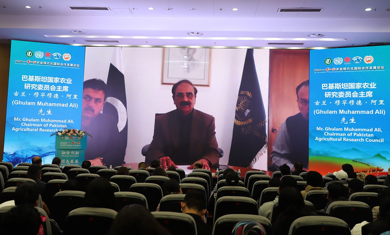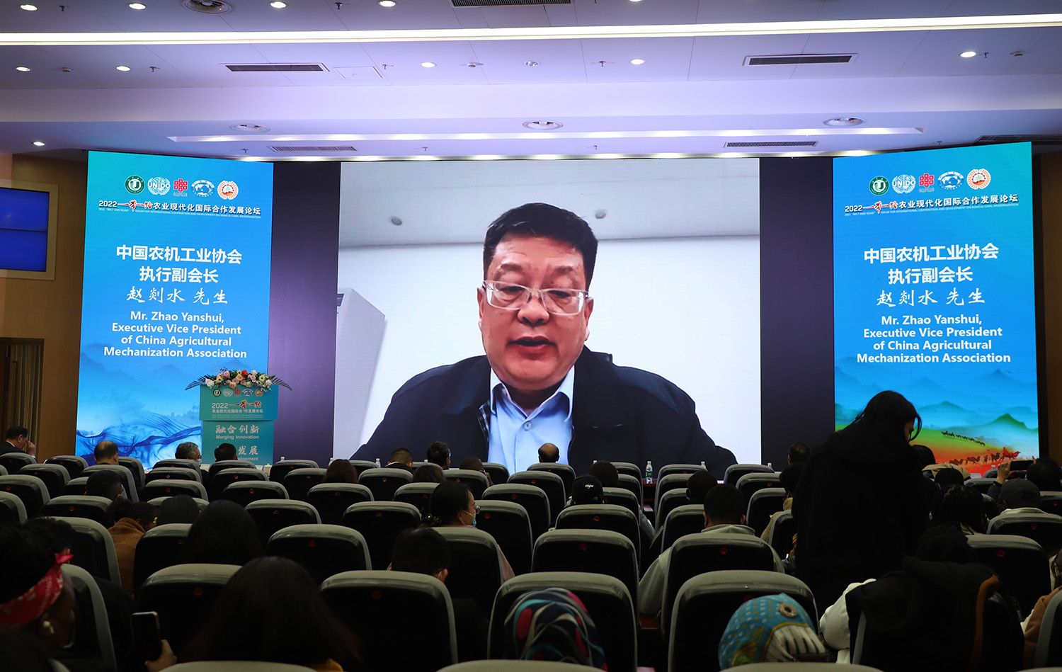 中国农业国际合作促进会会长许国成、中国农业机械工业协会执行副会长赵剡水、中国国际发展知识中心副主任蒋希蘅、中国教育国际交流协会副秘书长安延、中国农业机械化协会副秘书长夏明、中国农业科学院海外中心副主任聂凤英、农业农村部对外经济合作中心国际组织处副处长于浩淼、中国商业股份制企业经济联合会国际文化教育交流促进工作委员会主任邹海、中国国际科技促进会常务理事邢纪国;以及联合国粮农组织驻华代表文康农,联合国粮农组织植物生产与保护司司长夏敬源,联合国工业发展组织农业司司长德耶内·泰泽拉,联合国亚洲及太平洋经济社会委员会战略与项目管理司司长阿德南·阿里亚尼,联合国可持续农业机械化中心副主任安书曼,世界粮食计划署中国办公室南南合作主管贾焰,巴基斯坦国家农业研究委员会主席古兰·穆罕穆德·阿里尼,波黑塞族共和国农林水利部部长鲍里斯·帕沙里奇,莫桑比克教育部前部长、莫桑比克师范大学校长豪尔赫·费劳,尼泊尔跨喜马拉雅友好协会主席拉吉姆·库玛·贾哈,加纳苏尼亚尼能源与自然资源大学校长埃尔维斯·阿萨雷·比迪亚高,波黑塞族共和国巴尼亚卢卡大学副校长米罗斯拉夫·马利诺维奇等国内国际嘉宾线上出席论坛。