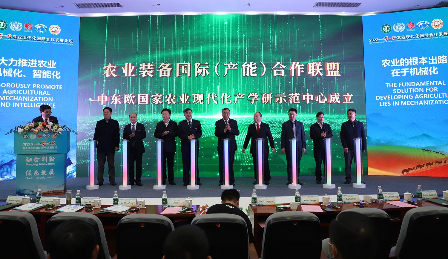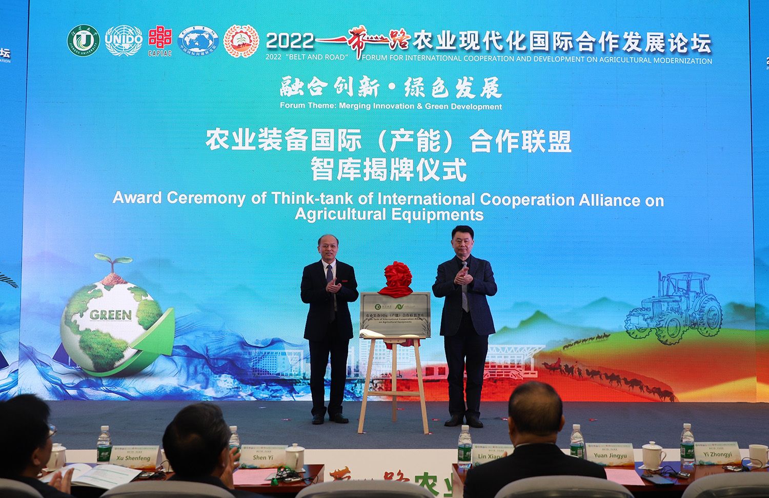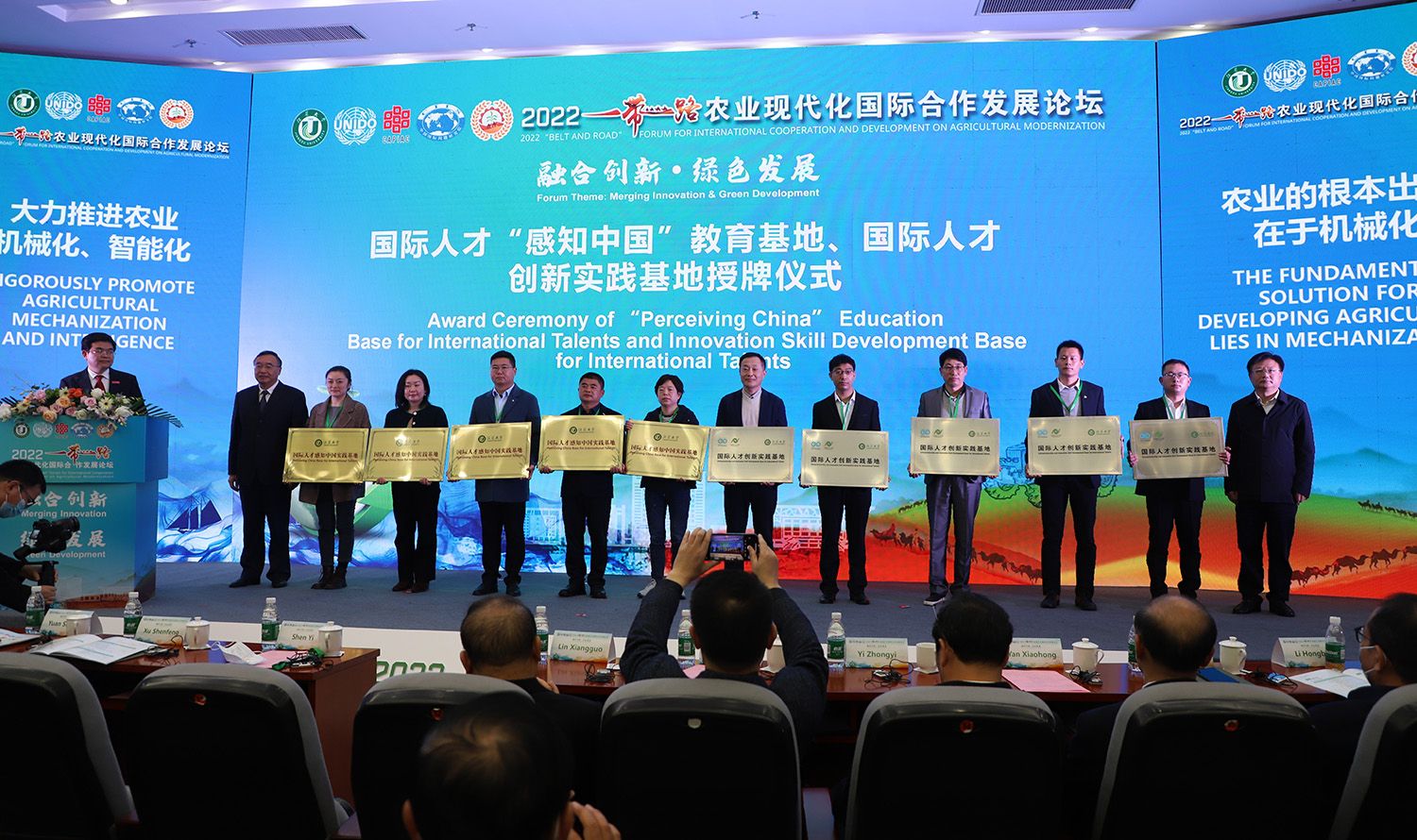 联合国工业发展组织全球农业现代化与食品安全教育培训中心揭牌,并向中心顾问指导委员会成员颁发了聘书。