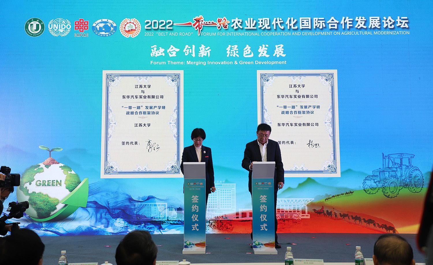 项目仪式上,农业装备国际(产能)合作联盟—中东欧国家农业现代化产学研示范中心成立、农业装备国际(产能)合作联盟智库揭牌、开运体育平台官方网站与东华汽车实业有限公司成立“一带一路”发展基金签约、国际人才“感知中国”教育基地和国际人才创新实践基地授牌。