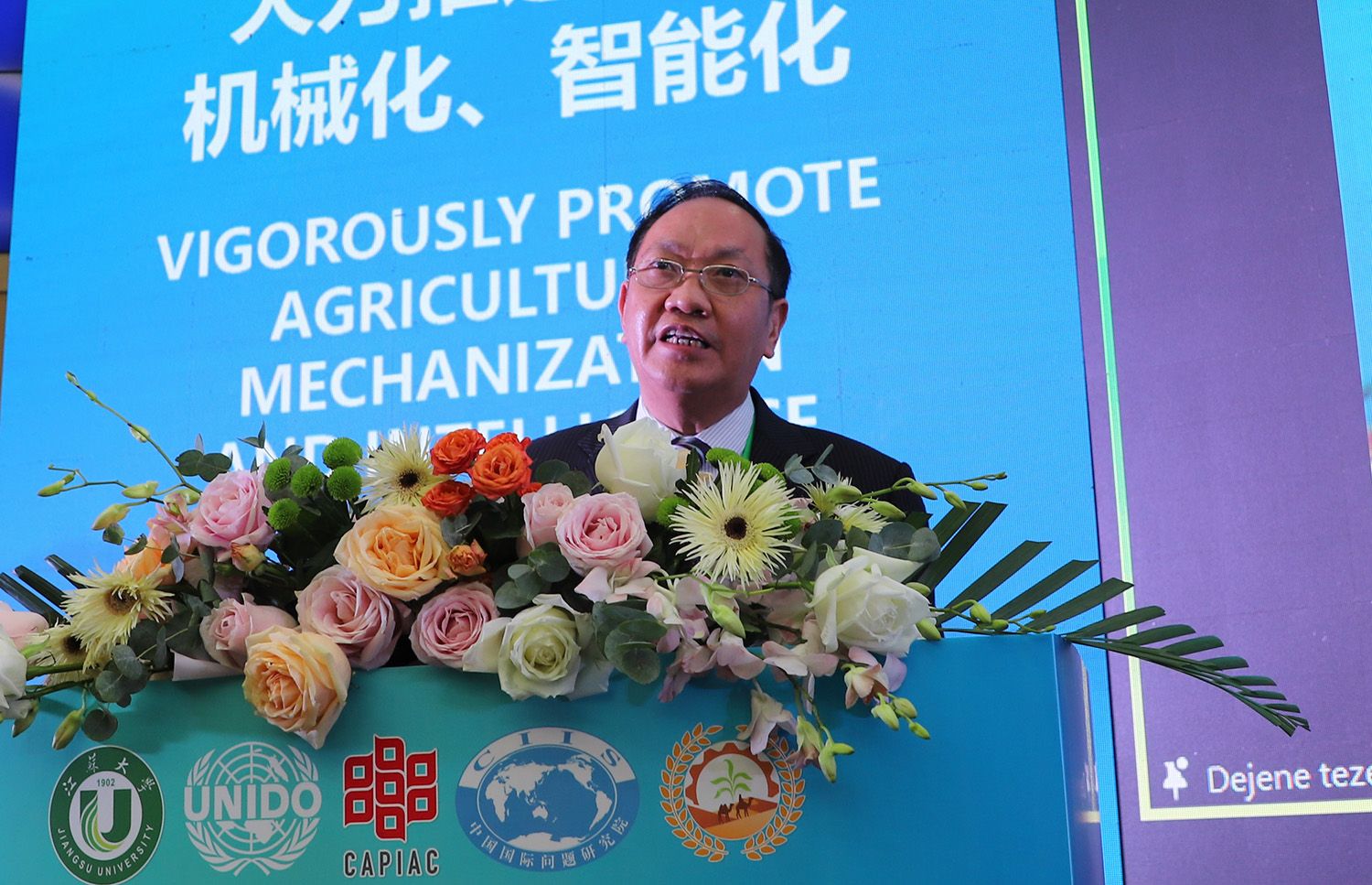 江苏省委原常委、政法委书记、江苏省人大常委会原常务副主任、江苏省对外友好交流促进会会长林祥国,江苏省农业农村厅一级巡视员沈毅,江苏省教育厅副厅长袁靖宇,镇江市人民政府副市长徐申锋,江苏省农业科学院院长易中懿、副院长孙洪武,江苏农林职业技术学院院长潘永圣,科技部中国-中东欧国家技术转移中心执行主任高凯,东华汽车实业有限公司总经理杨怀景,校党委书记、中国农业机械学会副理事长袁寿其等线下出席论坛开幕式。