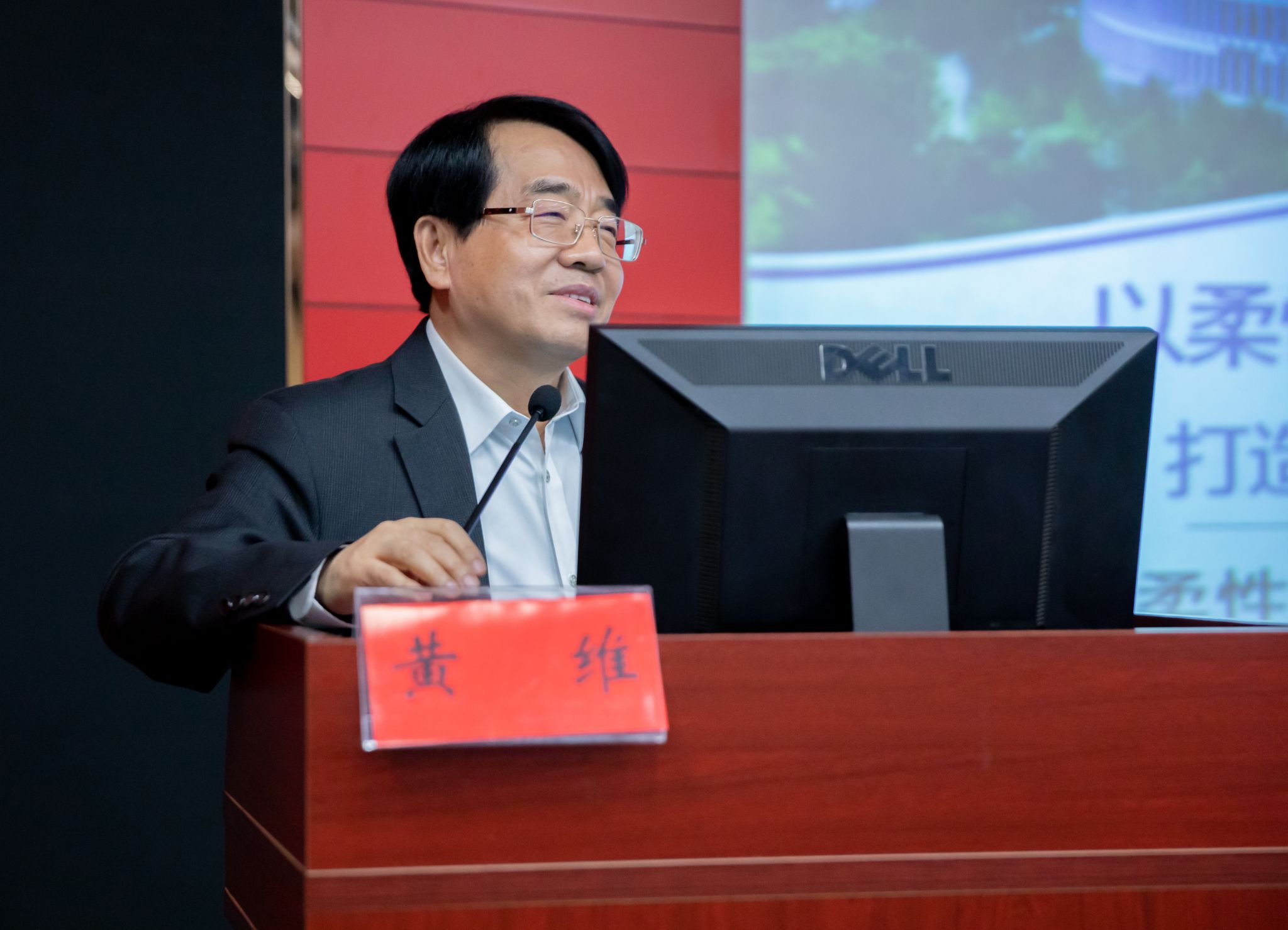 黄维作《厚植关键核心根部技术,打造柔性电子全球高地》的学术报告。报告从颠覆性创新定义国家未来、柔性电子未来产业的发展、创新团队与近期研发成果、柔性电子产业机遇与挑战等四方面阐述了未来柔性电子强国之路。黄维指出,柔性电子作为一种全新技术领域,具有可变形、便携、轻质、可大面积应用等特性,是高度交叉融合的颠覆性科技创新形式,将引领我国未来科技发展,有力助推我国从大国到强国的跃变,对改变全球经济、利益和安全格局具有重大意义。报告深入浅出,理论联系实际,引发与会师生的广泛关注。