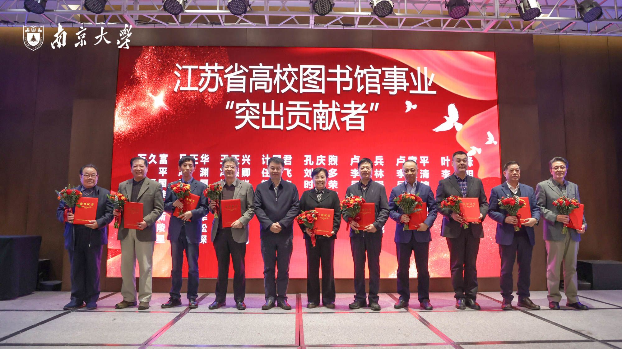 卢章平、任乃飞获江苏省高校图书馆事业“突出贡献者”称号,张晓阳获江苏省高校图书馆“榜样馆长”称号,李文娟获江苏省高校图书馆“榜样馆员”称号,开运体育平台官方网站图书馆荣获江苏省高校图书馆“优秀学术研究团队”,刘竟、刘桂锋、苏文成获江苏省高校图书馆“优秀学术研究工作者”称号。