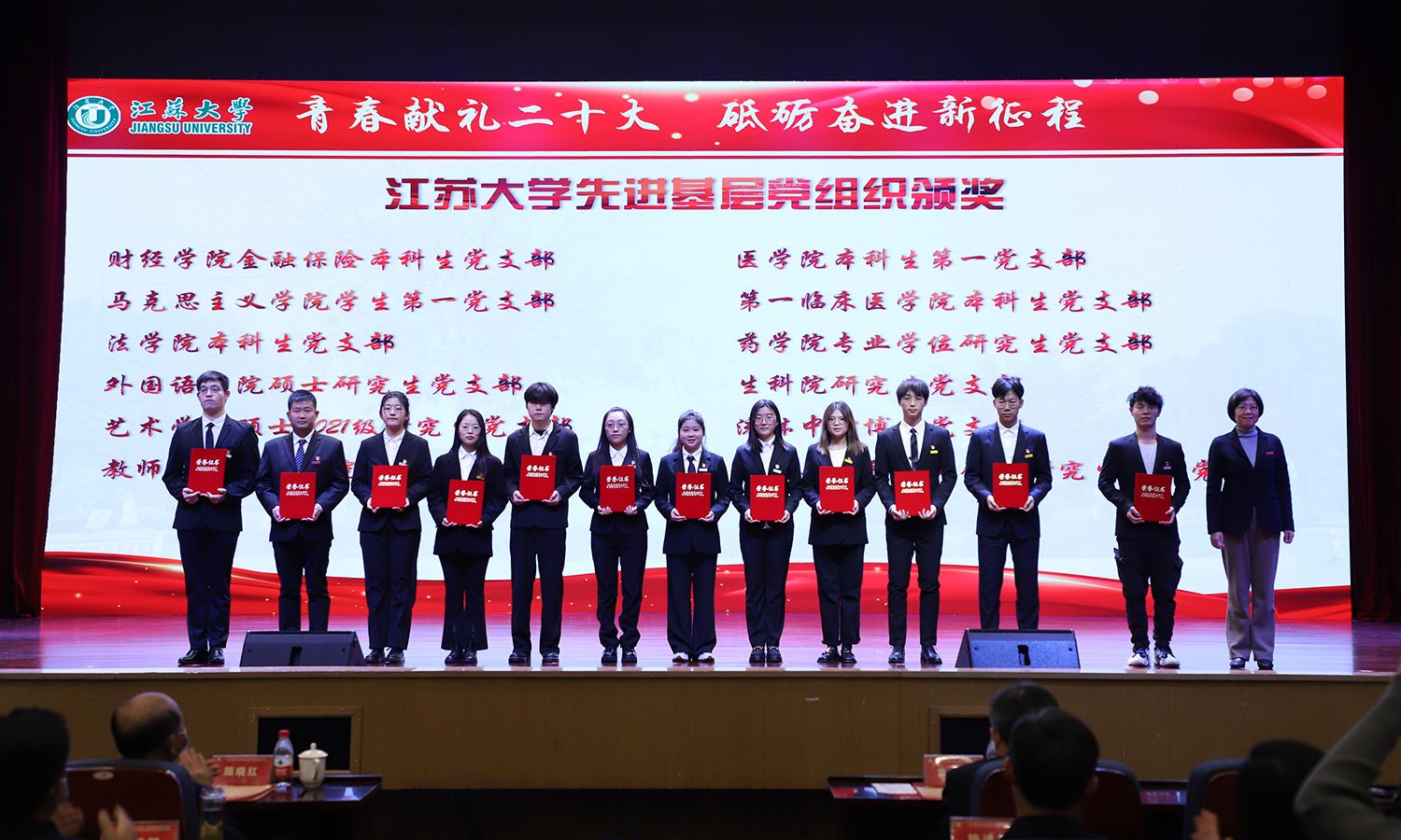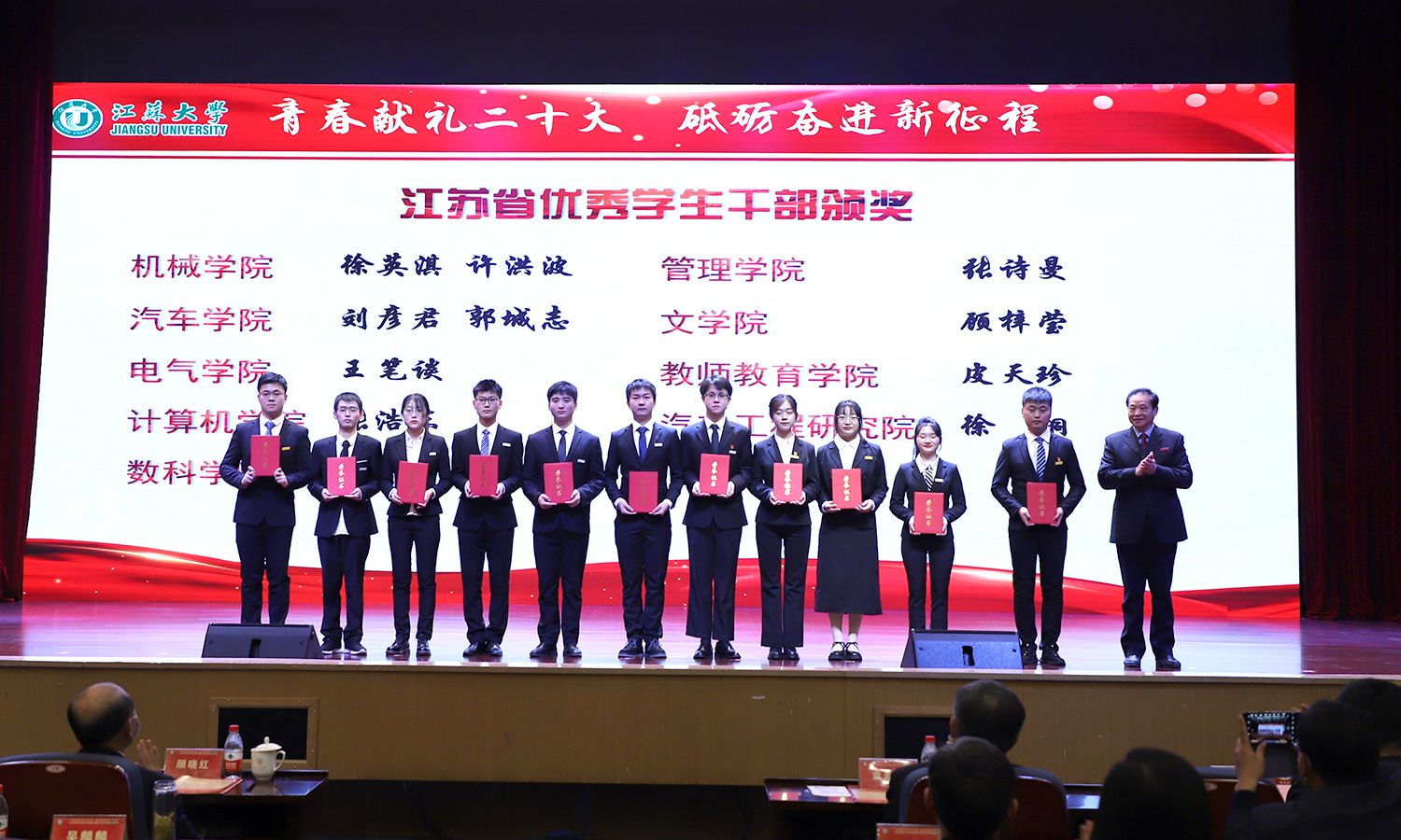 出席大会的领导为受表彰的先进集体和个人颁奖。校党委书记袁寿其为获得第八届中国国际“互联网+”大学生创新创业大赛国赛金奖、银奖团队代表和2022年全国大中专学生志愿者暑期“三下乡”社会实践活动优秀单位颁奖;颜晓红为2021-2022学年“博学”“求是”“明德”校长奖章获得者颁奖;校党委副书记李洪波为2022年度省级三好学生颁奖;校党委常委、纪委书记、派驻监察专员高庆国为2022年度省级优秀学生干部、省级先进班集体颁奖;副校长全力为2021-2022学年校三好标兵、校优秀研究生标兵颁奖;副校长赵玉涛为2022年度校大学生优秀共产党员代表颁奖;副校长李红为2022年度校大学生先进党支部颁奖;校党委常委、组织部部长马志强为2022年校社会实践活动先进单位颁奖;校党委常委、统战部部长杨敬江为2022年校社会实践活动十佳团队颁奖;校党委常委、宣传部部长杨道建为2022年校社会实践活动十佳个人颁奖。