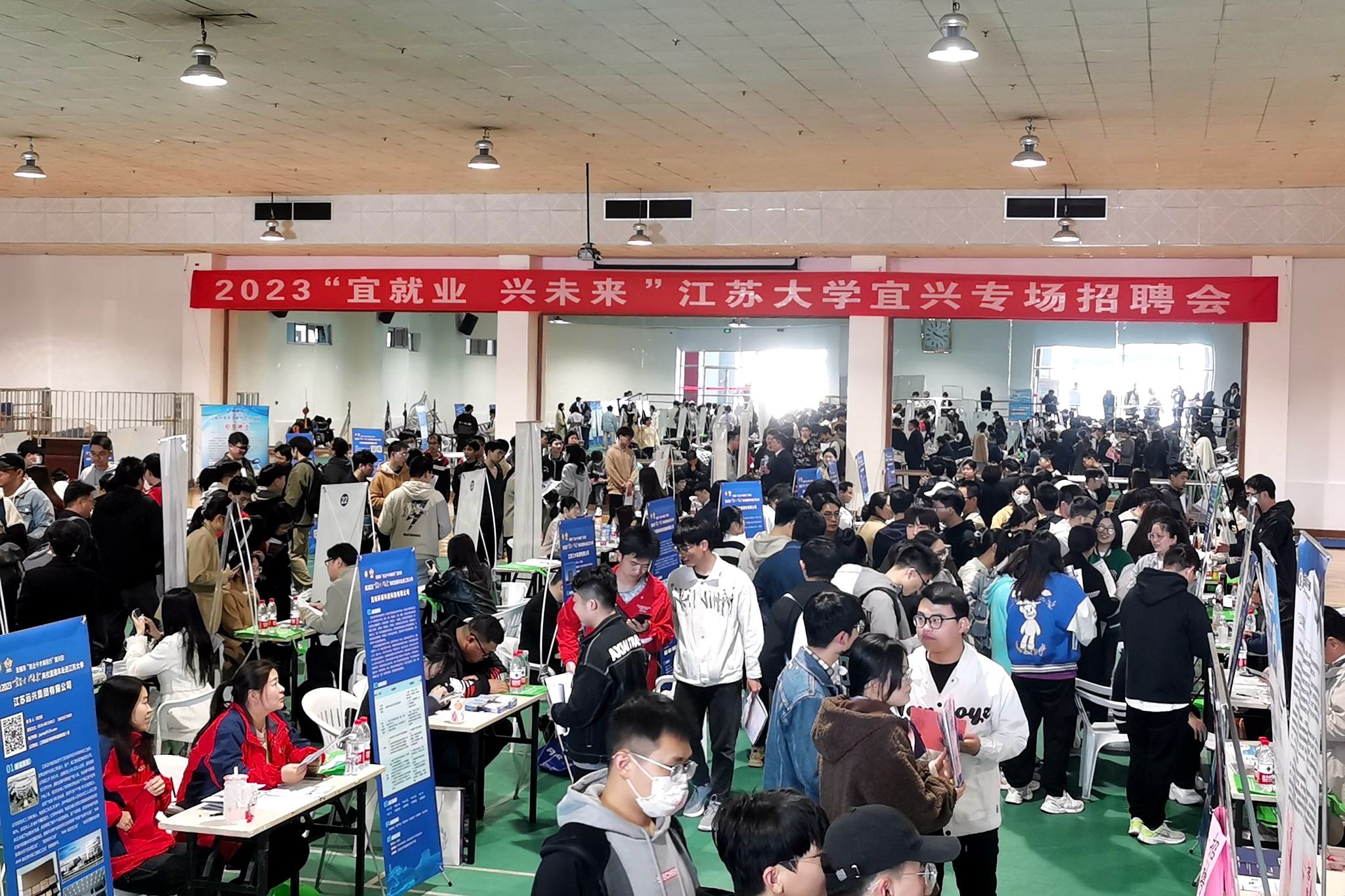 启动仪式后,宝银特种钢管有限公司、国联证券等42家宜兴市重点用人单位开展专场招聘活动,提供就业岗位近1000个,近800名毕业生现场求职。