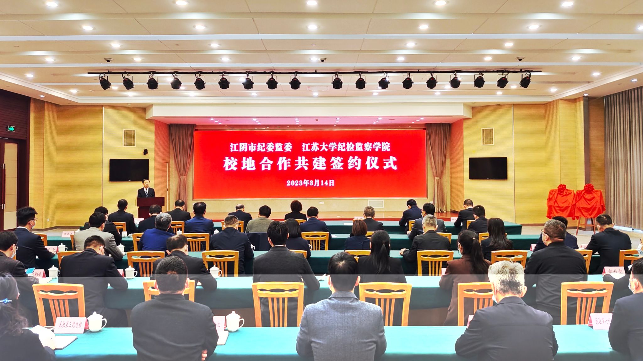 校党委副书记、校长颜晓红,校党委常委、纪委书记、派驻监察专员、纪检监察学院院长高庆国,校党委常委、副校长全力,无锡市委常委、市纪委书记、市监委主任周凤琴,无锡市委常委、江阴市委书记许峰,江阴市领导靳佳高、杭成出席签约仪式。