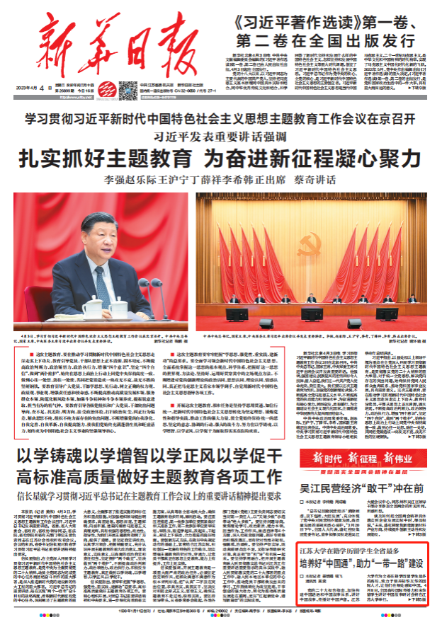4月4日,《新华日报》一版刊登文章《培养好“中国通”,助力“一带一路”建设》,报道我校来华留学生人才培养工作,让他们在细处感知中国,讲好中国故事、传播好中国声音。