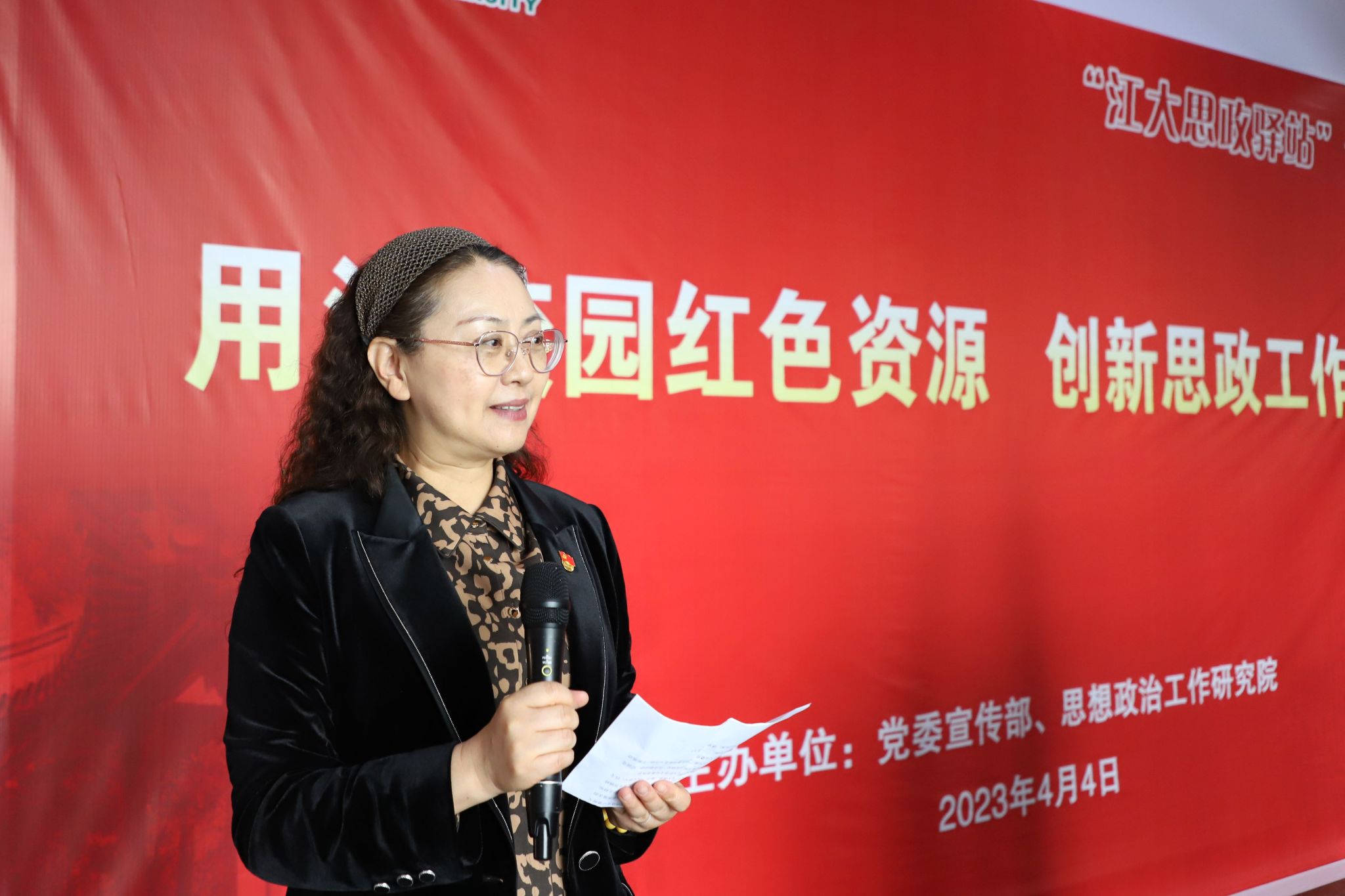 4月4日上午,开运(中国)思政驿站之“用活校园红色资源,创新思政工作路径”主题活动在图书馆一楼大厅举行。王龙烈士家属,思政舞台剧《王龙亭》主创人员及学校师生代表参加活动。活动由思想政治工作研究院执行院长金丽馥主持。