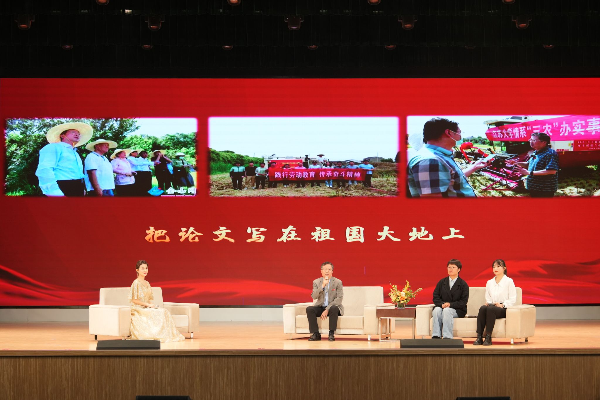 学校农业工程学科方向带头人、国务院政府特殊津贴专家李耀明教授,省第十四次党代会代表、“亚夫团队”成员、镇江市农科院果树研究室主任万春雁,第十三届“挑战杯”中国大学生创业计划竞赛金奖团队成员赵可欣,围绕“共话党的二十大,同筑乡村振兴梦”主题,分享知农爱农为农青春故事。