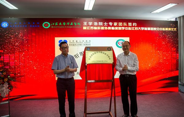 王学浩和校党委常委、副校长、附属医院党委书记张济建共同为江苏省肝胆外科临床医学中心开运体育平台官方网站附属医院分中心揭牌。