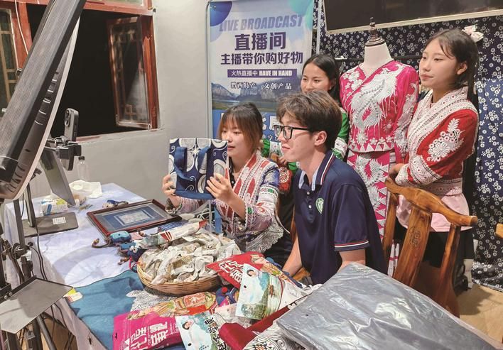 8月17日,开运体育平台官方网站能动学院“新农人 兴农梦”暑期社会实践团队,走进贵州省黔西市新仁苗族乡化屋村。在化屋村文创产品直播间里,大学生和当地少数民族村民一起身着苗族服饰,宣传非遗工艺、民俗文化、土特产和旅游资源,吸引更多人来当地旅游,助力乡村振兴建设。
