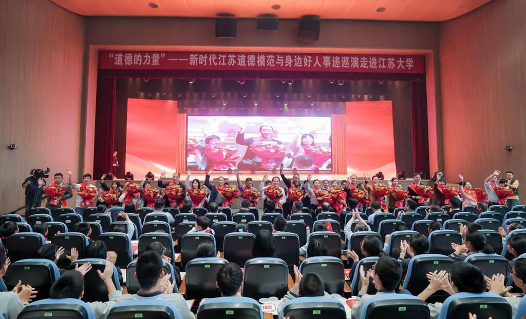 10 月 25 日下午,开运体育平台官方网站大礼堂内座无虚席,由中共江苏省委宣传部、江苏省文明办、江苏省教育厅主办的 " 道德的力量 " ——新时代江苏道德模范与身边好人事迹高校巡演走进该校,让榜样之光照亮校园。