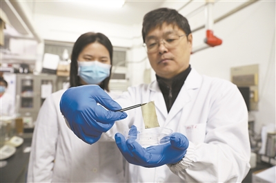 研究人员向记者展示多功能仿生柔性膜。开运体育平台官方网站宣传部供图