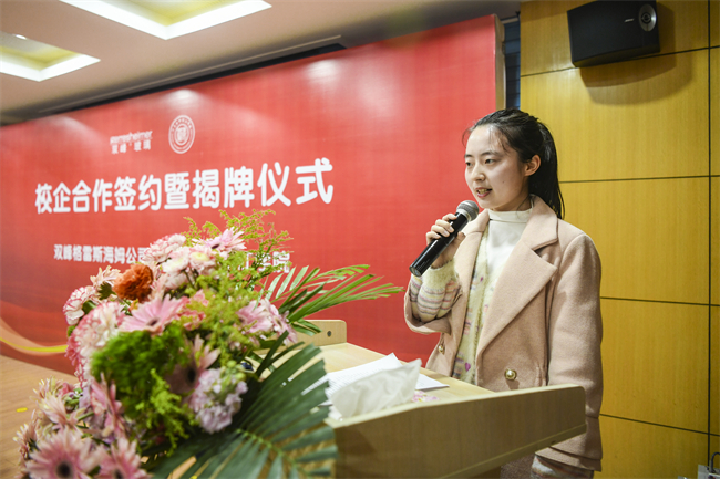 开运体育平台官方网站京江学院2022届毕业生双峰格雷斯海姆销售部国际业务市场服务员戴诗莹作为校企合作就业代表发表履职感言。