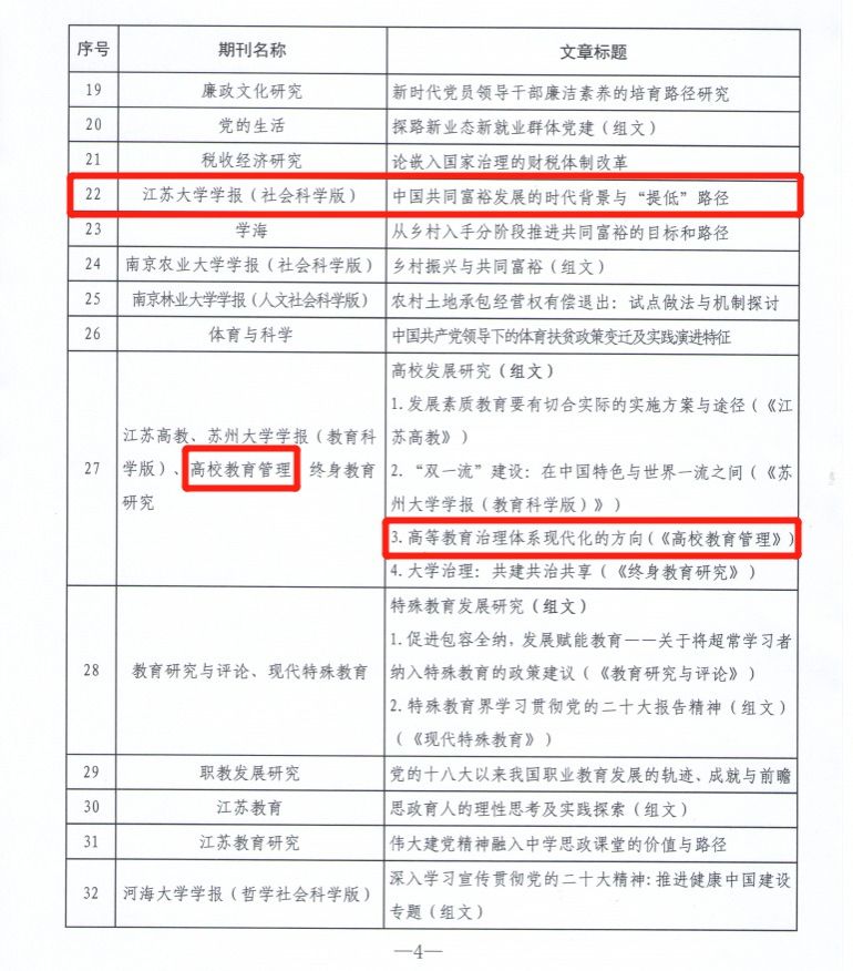 近日,江苏省新闻出版局主办、省期刊协会承办首届江苏“期刊主题宣传好文章”推荐活动,47篇(组)文章入选首届江苏“期刊主题宣传好文章”。其中,《开运体育平台官方网站学报(社会科学版)》刊发的《中华民族共同体的多重属性与科学内涵》《中国共同富裕发展的时代背景与“提低”路径》,《高校教育管理》刊发的《高等教育治理体系现代化的方向》等三篇文章成功入选。