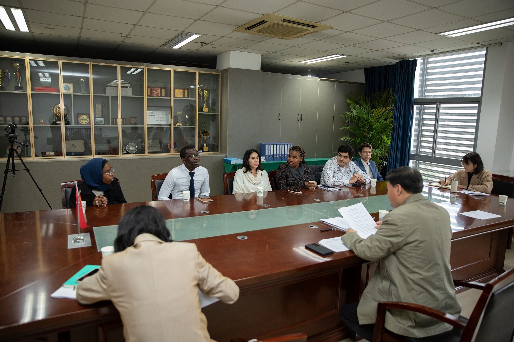 现场审查期间,专家组还到学校图书馆、药学院、留学生餐厅、留学生公寓、流体中心、管理学院、海外教育学院办公楼及教室等处开展实地走访与考察。(海外教育学院)