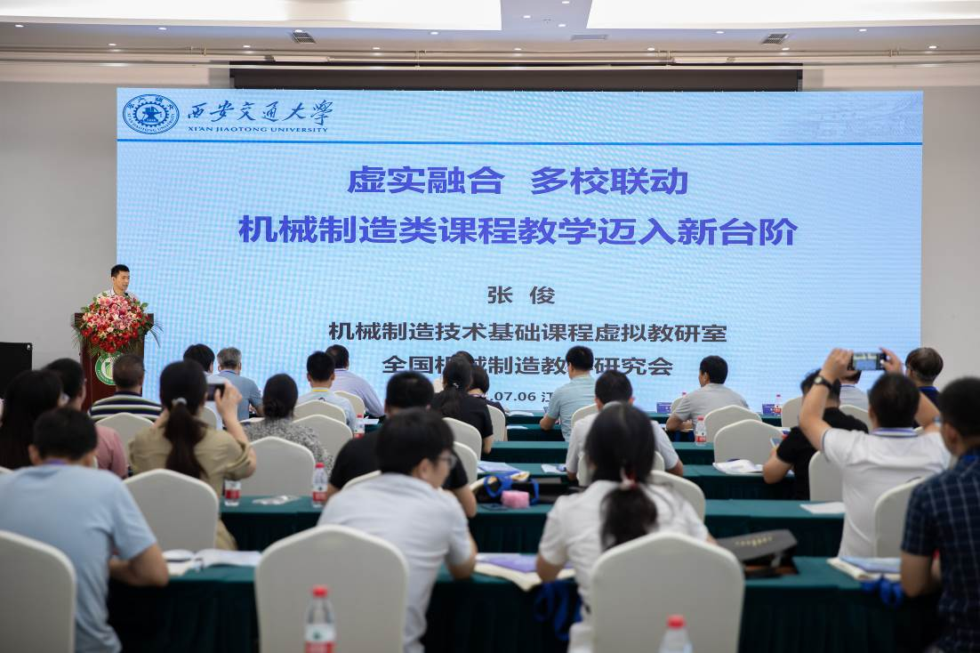 大会报告阶段,上海交通大学机械与动力工程学院党委副书记胡永祥以《信息化时代教研模式探索——以机械工程专业虚拟教研室建设为例》为题作交流报告。西安交通大学先进制造技术研究所所长、机械制造技术基础国家虚拟教研室副主任张俊以《虚实融合 多效联动 机械制造类课程教学迈入新台阶》为题作交流报告。
