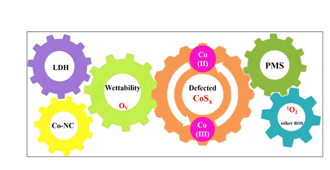 朱志老师和叶健博士后联合香港城市大学Yun Hau Ng教授、美国佐治亚理工学院John Crittenden教授在Environmental Science & Technology上发表论文,通过在PMS活化系统中引入封装Co粒子的碳纳米管(Co-NC)、富空位的还原硫物种(CoSx)以及具有层间阴离子/层间距可调的LDH,创新性构筑了CoSx@LDH@Co-NC特异性催化剂。研究表明,限域的Co-NC和层状LDH的界面效应增强了催化剂的润湿性,增强了催化剂与活性物种的界面接触;CoSx加速了Co2+/Co3+的氧化还原循环,延长了1O2寿命及迁移距离,使催化剂保持长效性和稳定性。在富集驱动催化的PMS-AOPs系统中,该催化剂10min内可完全降解多种污染物。制备的CoSx@LDH@Co-NC催化膜实现了动态催化,大大提高了反应动力学速率,连续运行5h降解活性无衰减。该工作为设计优良的催化剂和实际有机废水净化提供了借鉴。