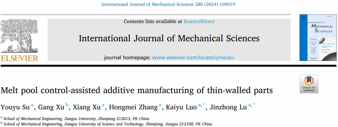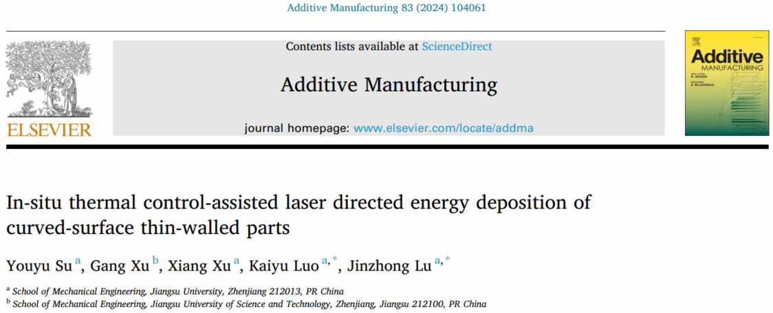 近日,我校机械工程学院罗开玉教授团队在增材制造领域顶刊《增材制造》(Additive Manufacturing)和机械制造领域顶刊《国际机械科学杂志》(International Journal of Mechanical Sciences)上分别发表了题为In-situ thermal control-assisted laser directed energy deposition of curved-surface thin-walled partsMelt pool control-assisted additive manufacturing of thin-walled parts的研究论文。